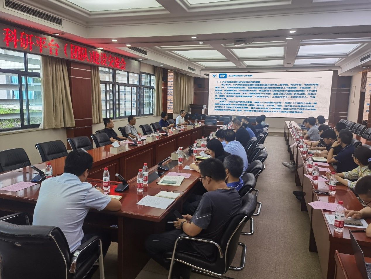 会上,科研处副处长黄睿介绍了孙卫平书记带队走访调研电子科技大学、四川大学等科研平台建设的情况,分享了调研收获,提出了要从学科(专业)建设出发促进科研平台建设,从“旁观者”到“学习者”成为“合作者”的平台建设思考。处长许磊从确保年度指标高质量完成,把握科教创新要求作好谋划,锚定本科谋划学科建设,促进科教融汇做深走实,对标任务梳理工作清单等五个方面介绍了未来科研发展的方向和主要工作思路。大数据与最优化研究所常务副所长肖山从行业调研分析共性需求,学校交流凝练关键技术,多方协作突破技术难题三个方面做了平台建设交流。建筑与材料学院院长周国清从政策支持、人才资源、科研经费、硬件设施、创新管理等方面介绍了学院支持科研平台(团队)发展建设的经验。