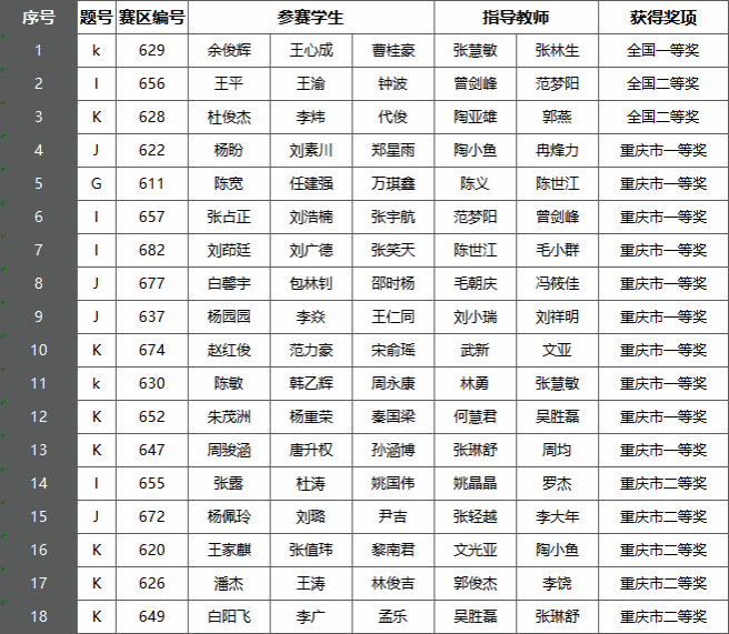 8月7日,2023年全国大学生电子设计竞赛(重庆赛区“TI”杯)在重庆大学圆满落下帷幕。重庆赛区34所高校800余支参赛团队参加了此次比赛。经过紧张而激烈的角逐,我校76支参赛队共获全国一等奖1项、全国二等奖2项,重庆市一等奖10项、二等奖5项、三等奖(成功参赛奖)57项。
