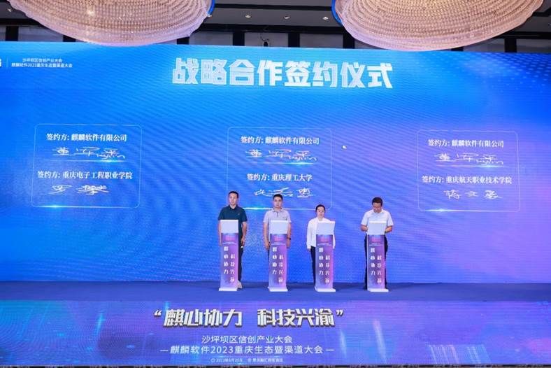 9月20日下午,沙坪坝区信创产业大会、麒麟软件2023重庆生态暨渠道大会在重庆融汇丽笙酒店举行。本次大会由中共重庆市委网信办、重庆市经信委、重庆市大数据应用发展管理局、重庆市沙坪坝区人民政府主办,麒麟软件有限公司、重庆市信息技术应用创新产业联盟、专业信息设备应用示范川渝基地承办,大会主题为“麒心协力,科技兴渝”。