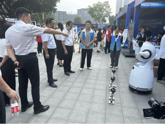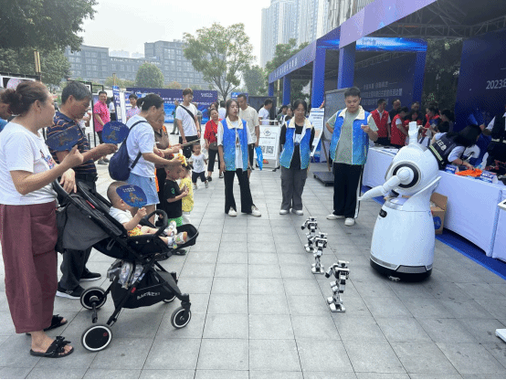 活动现场,四足仿生机器人随音乐律动而舞蹈,引起了无数青少年的关注,纷纷驻足观望。工作人员的讲解使青少年对仿生机器人的认知更多、兴趣更胜。