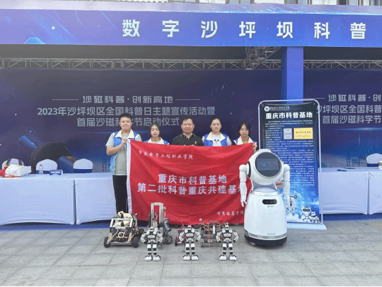 重庆电子工程职业学院科普基地受邀参加沙磁科学节,自承接任务以来,在科研处的指导下,团队师生积极筹备,认真策划、精心组织。此次展览我们展出了跳舞、移动射击、取物抛射、四足仿生机器人。其中四足仿生机器人为主要展览对象,它具备人体的外形特征,通过手臂和身体的协调完成一些功能,应用看,人形机器人与服务机器人更加类似,但人形机器人通用性更强,能胜任多种场景。