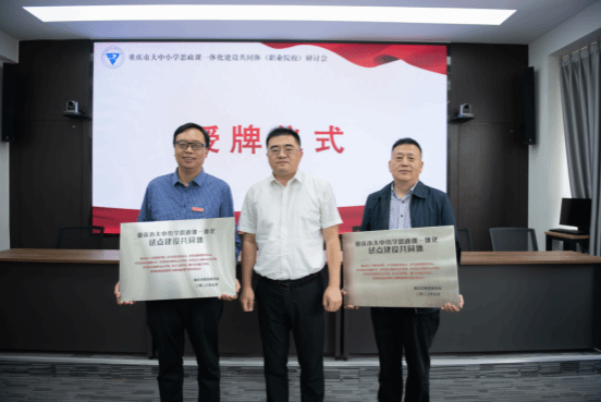 随后,在现场所有人员的共同见证下,市教委宣教处处长李林齐对重庆市大中小学思政课一体化建设共同体单位进行授牌。