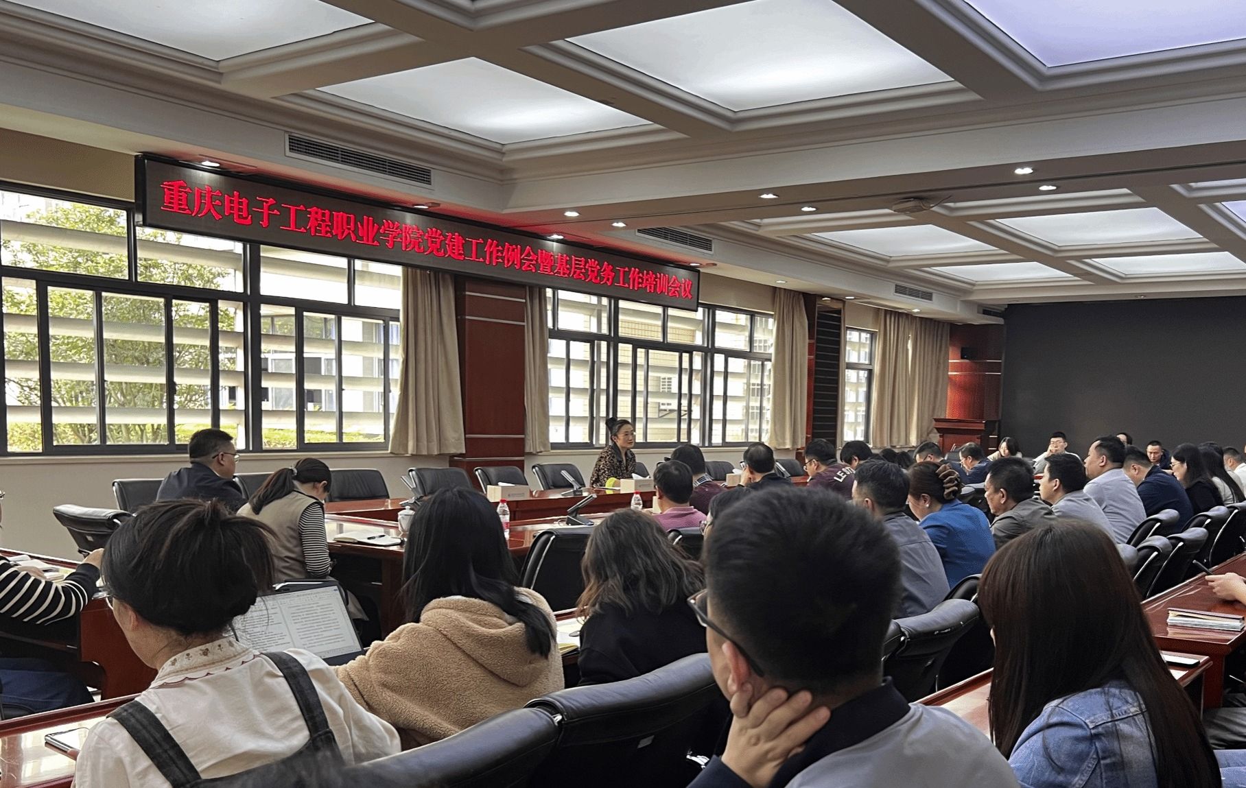 10月23日下午,我校在博润厅召开了党建工作例会暨基层党务工作培训会。党委委员、党委组织统战部部长疏勤,全体党总支书记、二级学院专职副书记、专职组织员,全体党支部书记,各二级党组织具体负责党建工作的人员参加了会议。本次会议由党委委员、党委组织统战部部长疏勤主持。