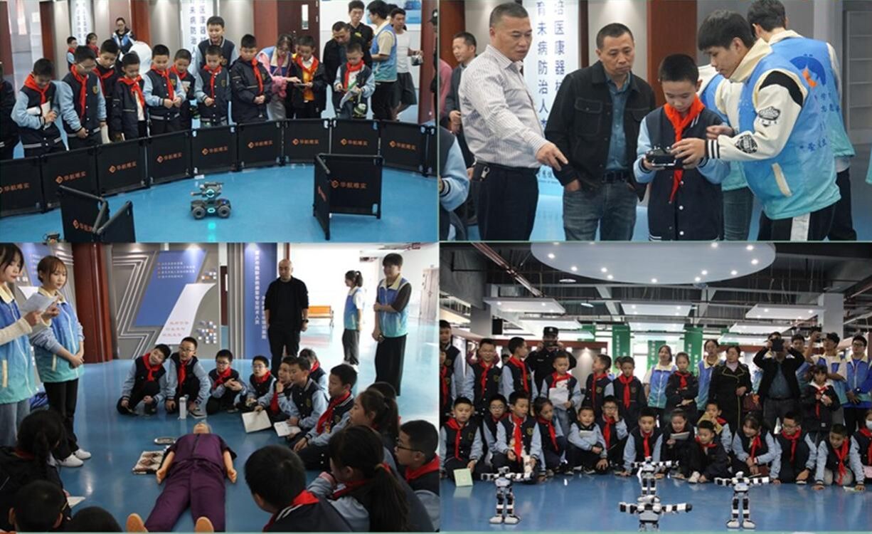 10月30日,永川区上游小学46名师生到学校市级科普基地开展科学教育活动。上游小学师生分批次参观了教育部机器人技术应用协同创新中心、教育部机器人技术应用生产性实训基地,学习了机器人及心肺复苏急救相关知识,观看了人形机器人协同舞蹈、机器视觉分拣、下肢康复机器人,互动体验了上肢康复机器人、对战机器人、移动机器人,分组实施了心肺复苏急救过程。