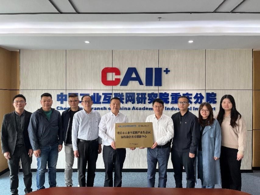11月6日,刘洪光副校长、电子与物联网学院陈良院长等一行6人来到中国工业互联网研究院重庆分院开展调研交流,并举行了园校融合技术创新中心揭牌仪式。中国工业互联网研究院重庆分院院长郭刚、中国工业互联网研究院重庆分院政企服务团队负责人余浩等人出席揭牌仪式。