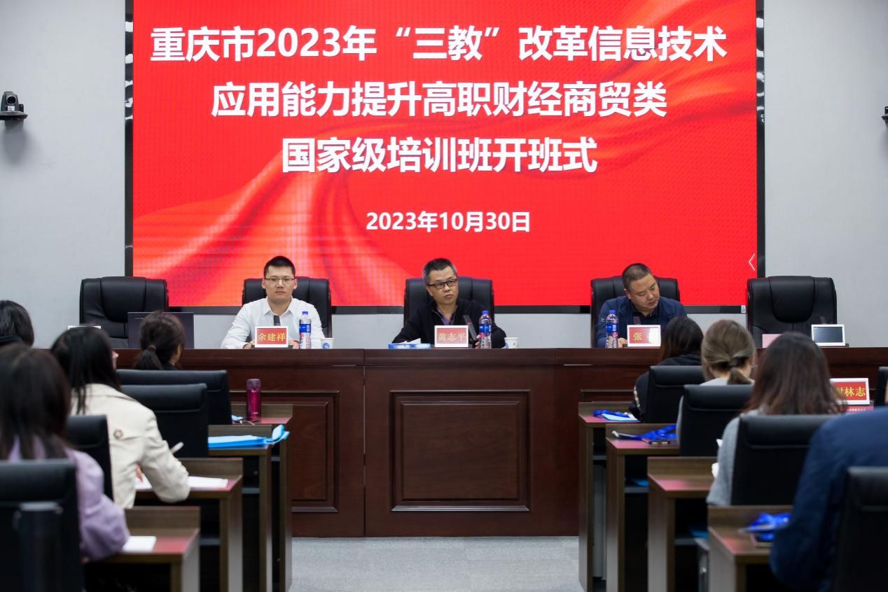 10月30日,重庆市2023年“三教”改革-信息技术应用能力提升高职财经商贸类教师国家级培训班在我校国培基地院博学厅顺利开班举办。我校财经管理学院院长黄志平教授、国培基地办张亚副主任、班主任余建祥老师,以及来自重庆市高职院校的50名财经商贸类教师参加开班仪式。开班仪式由基地办副主任张亚主持。