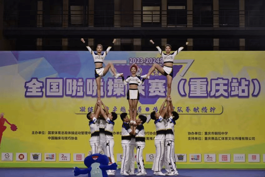 10月27-29日,由国家体育总局体操运动管理中心、中国蹦床与技巧协会主办,中国蹦床与技巧协会啦啦操分会承办,重庆市朝阳中学协办的2023-2024年全国啦啦操联赛(重庆站)在朝阳中学展开角逐,我校参赛队由体育与国防教学部党总支书记冉槐担任领队,体育与国防教学部教师彭天娥、周盈含、曹露双担任教练,共派出31名运动员分别参加了9个单项的比赛,共计获得9个单项冠军的好成绩,实现参赛项目金牌大满贯。