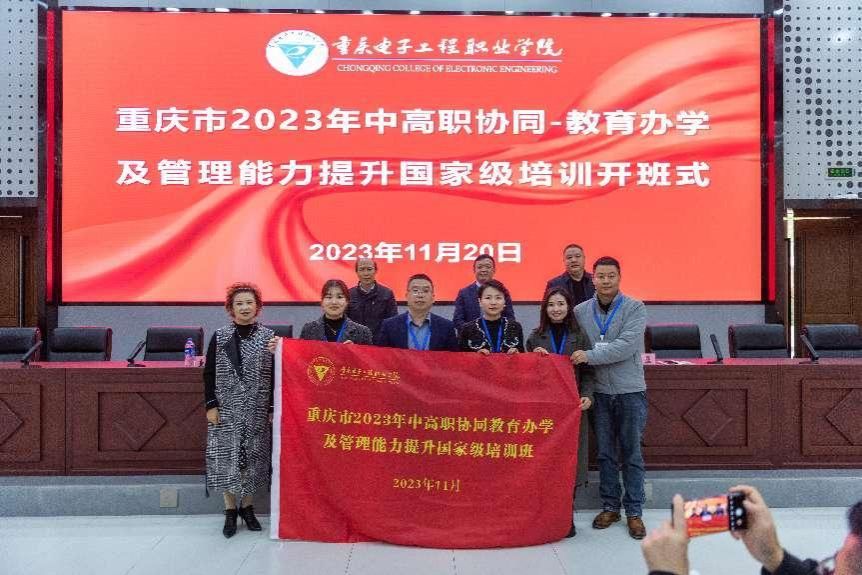 11月20日,由重庆市教委主办、重庆市职业教育学会联合我校国培基地承办的重庆市2023年中高职协同-教育办学及管理能力提升国家级培训班在我校国培基地院博远厅顺利开班举办。重庆市职业教育学会驻会副会长兼秘书长况力同志,重庆市职业教育学会宣传培训部袁丽娟主任,教育部国培(重电)基地办主任、重庆电子工程职业学院职教师资培训学院书记兼院长莫绍强教授,以及来自重庆市中高职院校100名管理干部参加了开班仪式。开班仪式由国培基地办副主任张亚主持。