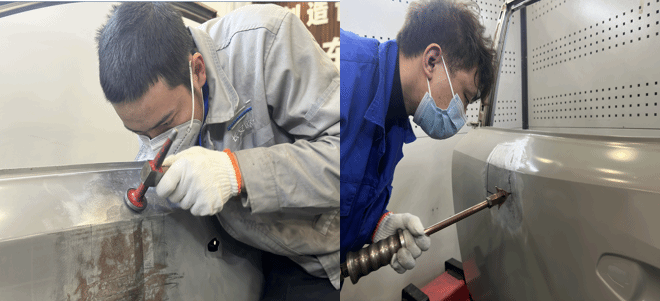 此次培训设置了汽车车身材料和结构、车身损伤检测及部件装调、车身修复标准样规制作及应用、钢制板件整形粗修技术、钢制板件整形精修技术、MAG焊接工艺及操作技术、MAG焊接缺陷处理技术、车身维修连接技术、电阻点焊操作技术、车身维修切割、车身维修钻除技术等。满足了各位钣金技师的职业技能需求。我院专业教师朱游兵、魏健东,郑文庆(国家级车身修复技能大赛获奖者)三位为“钣金维修技师中级培训”培训师,反映了我院师资队伍、实训条件等方面的优势。希望参训学员们珍惜来之不易的机会,抓住一切可以锻炼的机会,扎实掌握汽车钣金技术,夯实自己的技术根基。