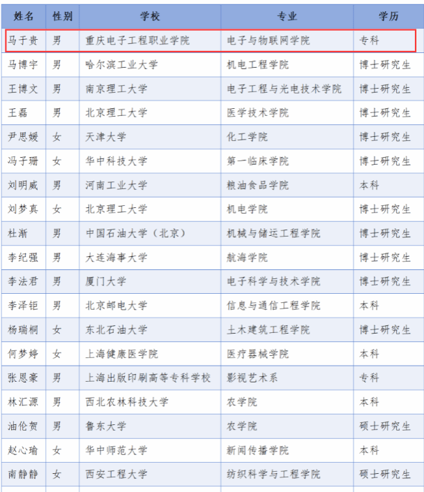 2023年度人民网奖学金评选结果于近日公布,我校陈良国家级技能大师工作室学员马于贵成功入选。该项评审于今年9月面向全国大学生开放申请,截至10月15日,共744名大学生参与网上报名。经过资格审查、专家评审及评审委员会审议,最终评选出30名奖学金候选人。