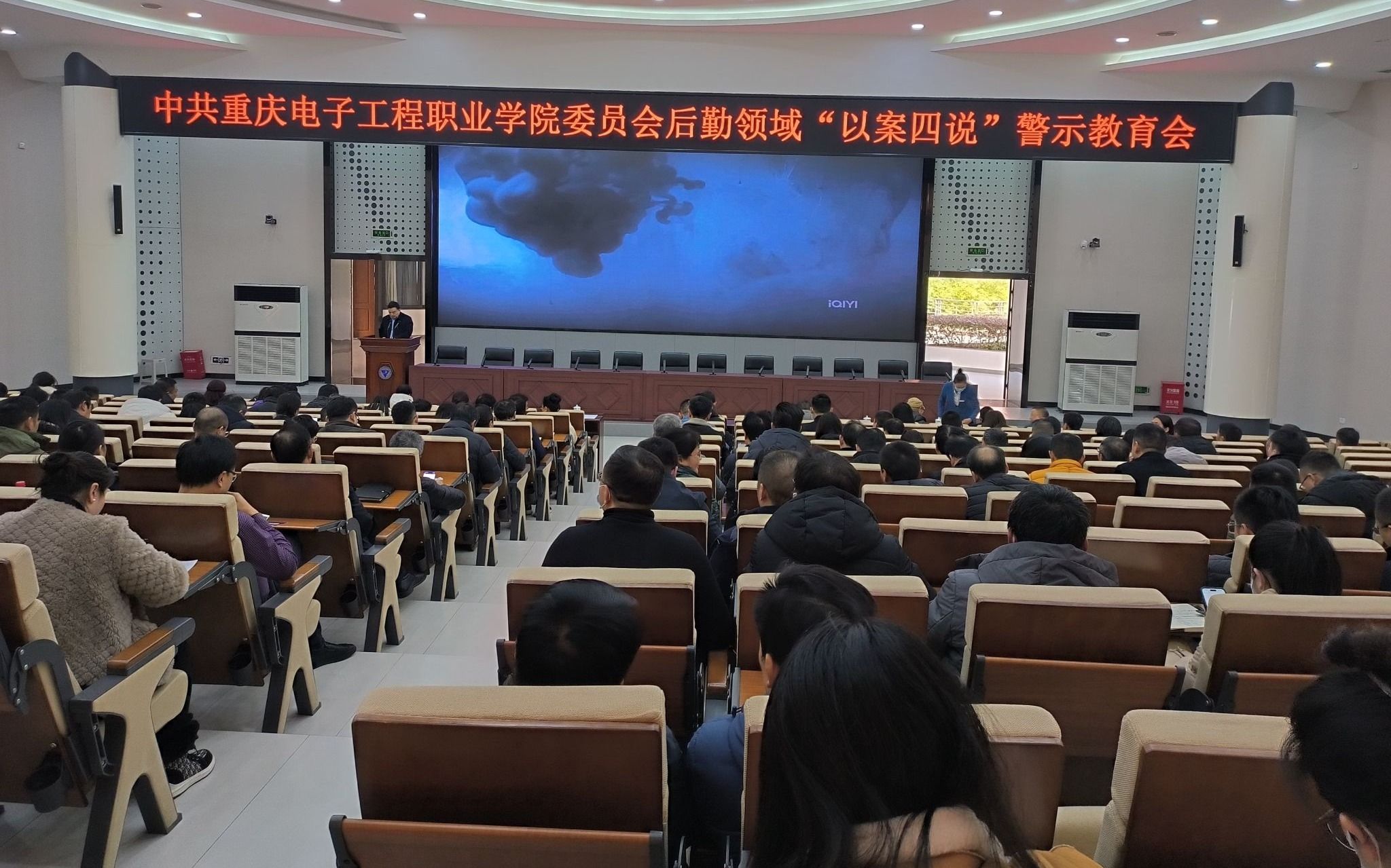 12月26日下午,中共重庆电子工程职业学院委员会召开后勤领域“以案四说”警示教育工作会议,深入学习贯彻习近平总书记关于全面从严治党的重要论述和党中央关于全面从严治党的战略部署,贯彻落实市委、市委教育工委相关会议精神,强化管党治党“两个责任”,纵深推进全面从严治党。全体在家校领导、处科级干部、关键岗位、重点领域工作人员200余人参加会议。