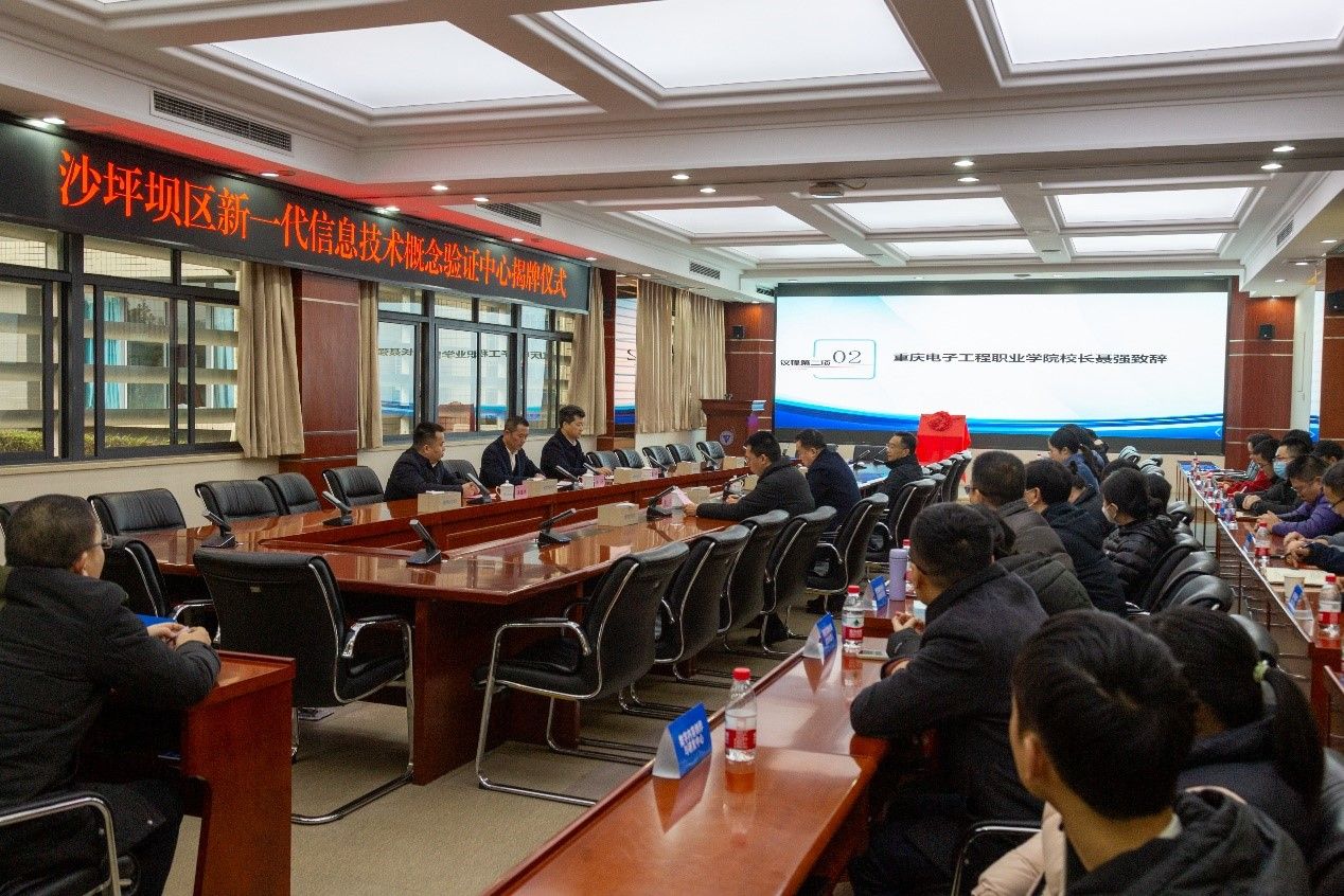2023年12月29日,重庆沙坪坝区新一代信息技术概念验证中心揭牌仪式在我校博润厅举行。沙坪坝区新一代信息技术概念验证中心是科技成果转移转化的专业平台,是重庆市首个以“概念验证”为主题的科技成果验证机构。市科技局二级巡视员杨军,沙坪坝区政府副区长凌健,学校校长聂强,副校长刘成俊等领导出席。我校科研平台(团队)、首批进入中心的相关人员约40余人参加会议。
