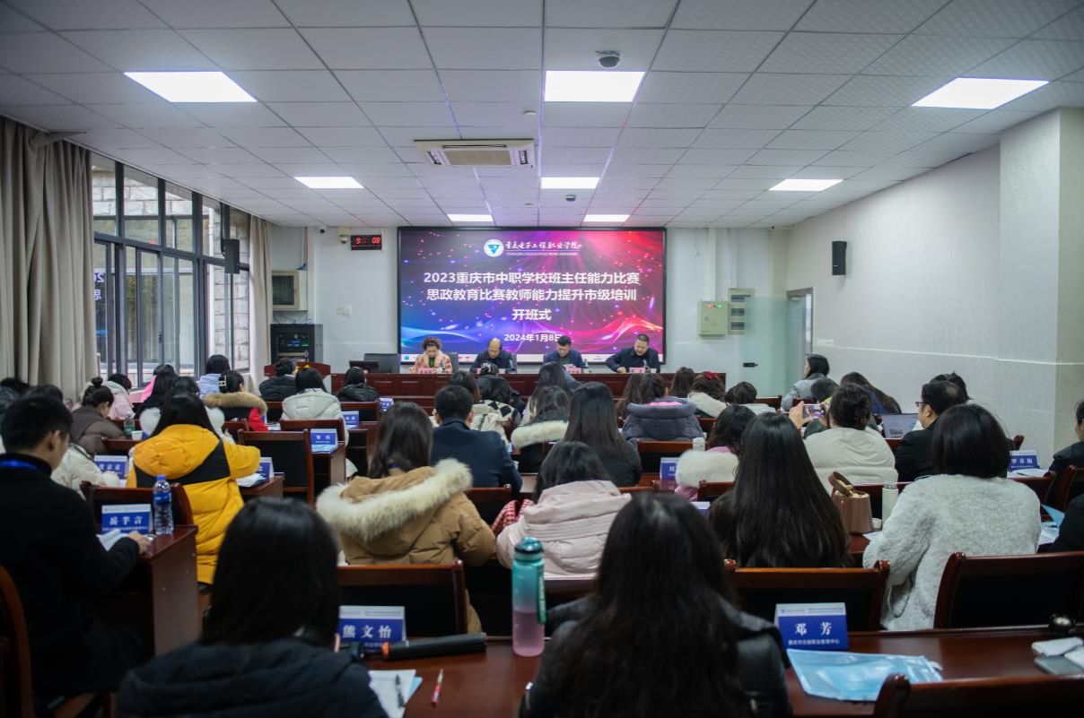 2024年1月8日,由重庆市教委主办,重庆市职业教育学会联合我校承办的重庆市2023年职业院校技能大赛中职班主任能力比赛、思政教育比赛优秀教师和指导教师能力提升培训培训在我校国培基地博才厅开班,重庆市职业教育学会驻会副会长兼秘书长况力,重庆市职业教育学会宣传培训部主任袁丽娟,教育部国培(重电)基地办主任、重电职教师资培训学院书记兼院长、培训与继续教育学院院长莫绍强教授,以及来自我市各中职学校的70名老师参加开班式。开班式由基地副主任张亚主持。