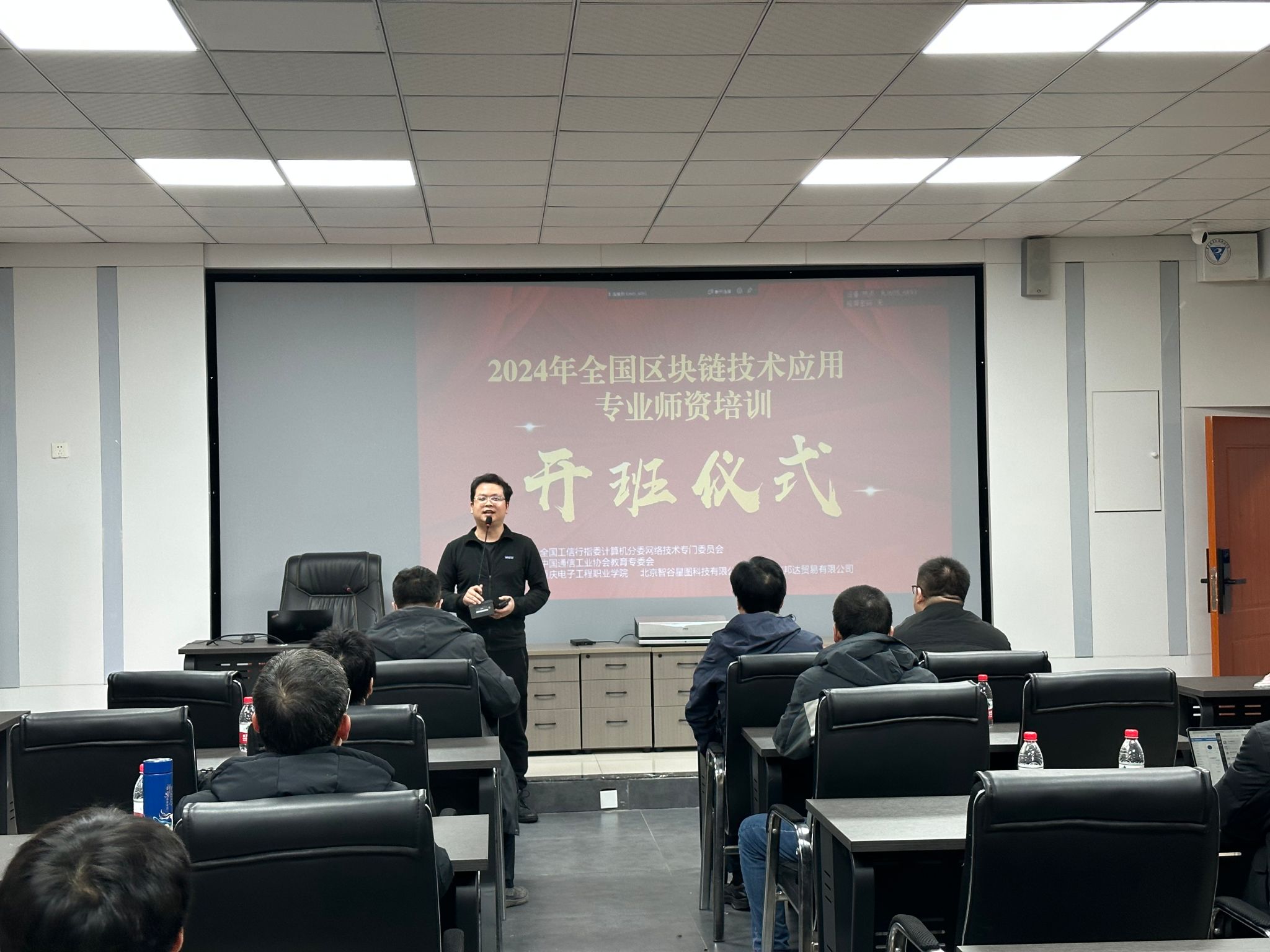 1月4日,由全国工信行指委计算机分委网络技术专门委员会、中国通信工业协会教育专委会主办,我校联合北京智谷星图科技有限公司、北京京邦达贸易有限公司承办的2024年全国区块链技术应用专业师资培训(重庆)在人工智能与大数据学院4105会议室开班,人工智能与大数据学院院长武春岭,北京智谷星图科技有限公司总经理秦备,云计算与大数据系主任李腾以及来自国内8省10市的49名老师参加了开班仪式。开班仪式由北京智谷星图科技有限公司总经理秦备主持。