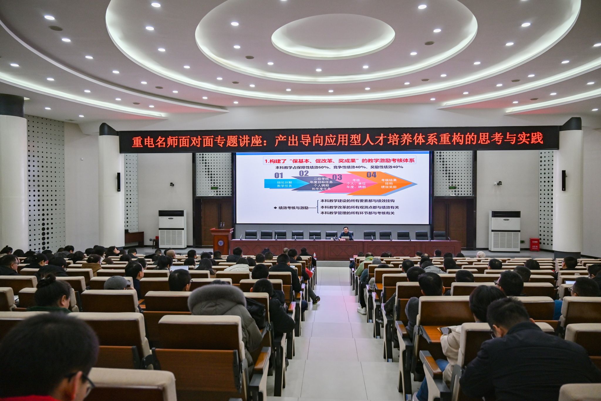 为进一步提升学校专业建设水平,贯彻落实“以学生为中心,成果导向,持续改进”的OBE教育理念,确保高素质技术技能星空(中国)质量,促进学校内涵式高质量发展。2024年1月11日,学校邀请重庆科技大学副校长柏伟教授在博远厅做了题为“产出导向应用型星空(中国)体系重构的思考与实践”专题讲座,学校党委副书记龚小勇、二级学院领导、系部(教研室)主任、专业主任、教学与课程思政管理科负责人、教师代表及教务处相关人员共计100余人参加了会议,会议由教务处处长童世华主持。