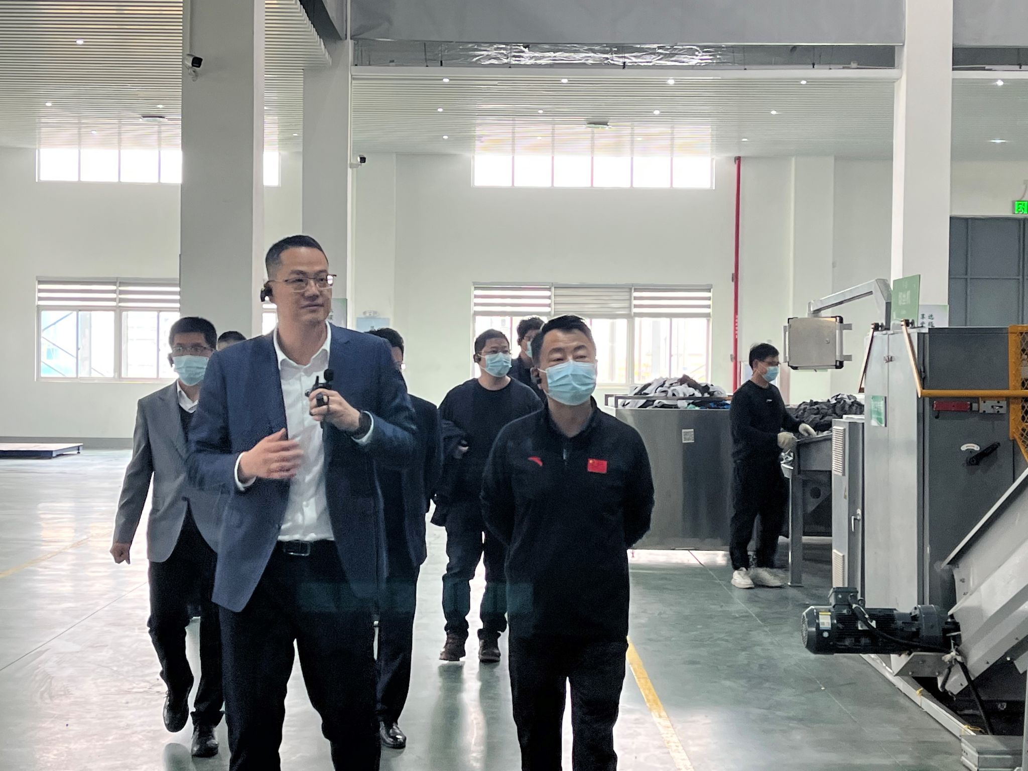 在福建莆田的华峰华锦有限公司,集团副总裁林金建、公司总经理林建坤及人力资源中心负责人杨祥辉陪同参观调研。华峰华锦有限公司是以绿色可持续发展为战略目标,以自主研发为核心,为纺织行业提供绿色可持续发展技术与应用解决方案的高科技纺织企业,自主研发品牌产品广泛应用于鞋服、家纺、电子、家居、汽车等多个领域,与多个国际一线品牌建立战略合作伙伴关系。在企业相关负责人陪同下,孙卫平书记一行走访参观了研发、生产一线,并在座谈中向企业方介绍了学校的基本情况、发展状况和未来合作方向,双方均表示希望未来能在科技研发、学生实习就业等多方面实现互融互惠。