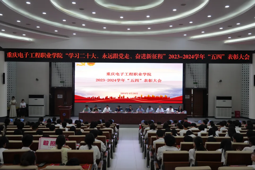 为深学笃行习近平新时代中国特色社会主义思想,深入学习宣传贯彻党的二十大精神和习近平总书记关于青年工作的重要思想,充分发挥青年典型模范带头作用,团结引领广大团员青年挺膺担当、砥砺奋斗,4月28日下午,重庆电子工程职业学院2023-2024学年“学习二十大、永远跟党走、奋进新征程”“五四”表彰大会于博远厅顺利举行。