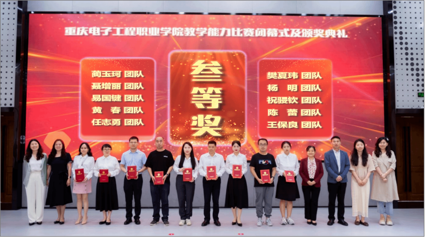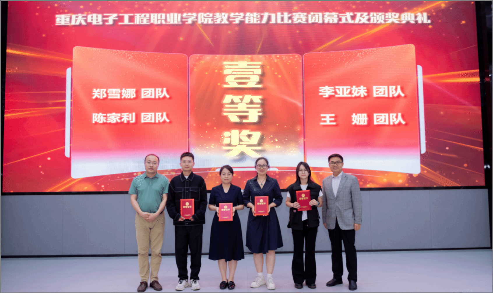 学校以竞赛为抓手,秉持“以赛促教、以赛促学、以赛促改、以赛促研”理念,持续完善教学能力比赛机制,进一步健全校级指导教师管理制度,着力提升教师教育教学能力与水平,全面提升教学质量。在2021-2023年中,每年取得全国职业院校技能大赛教学能力比赛2个一等奖的佳绩,国赛一等奖数量位列全国高职第2。成绩的取得,离不开教师们的辛勤努力,离不开校内指导教师、省内外专家的精心指导,更离不开学校领导的关心关怀与大力支持。在学校领导的关心支持下、在各部门的密切配合下,通过教师们的努力拼搏,重电定能不断再创佳绩。