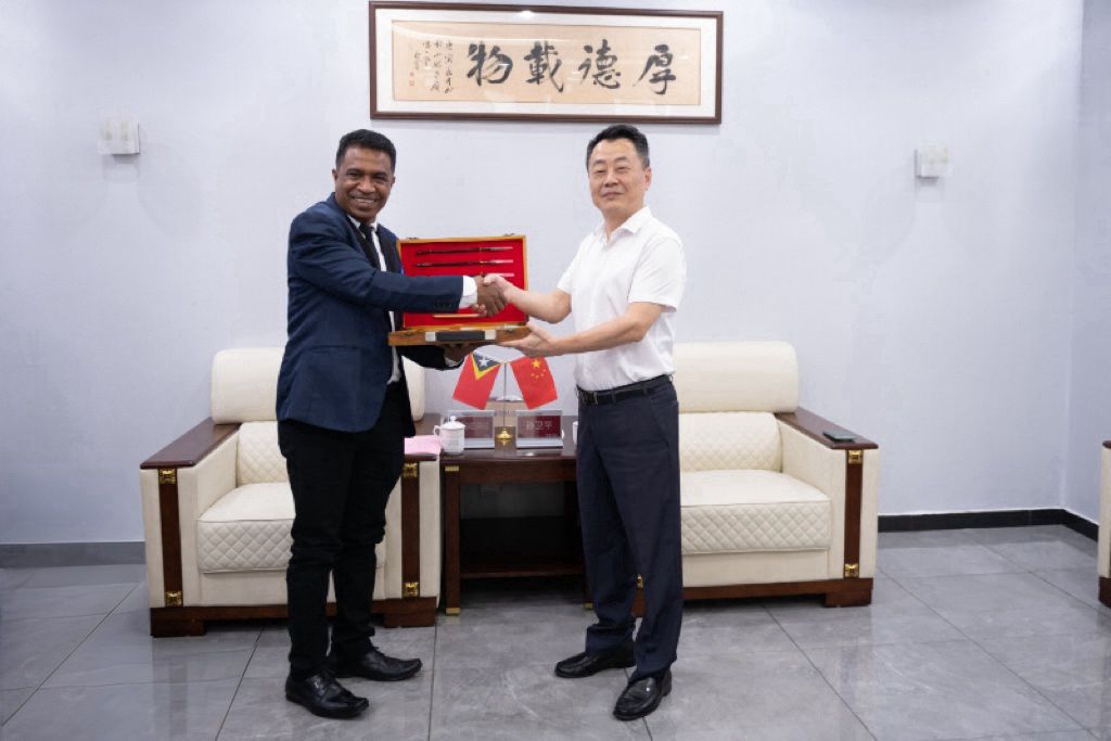各方首先在室语厅齐聚一堂,深入探讨国际职业教育合作前景,并就未来的合作计划进行了充分交流。孙卫平书记围绕我校在职业教育国际化领域的设施、课程、师资建设等方面的成果和优势,向来访嘉宾进行了详细介绍,并表达了与东帝汶在留学生培养、师资培养等领域开展合作的美好期待。东帝汶方面也介绍了该国在职业教育领域的有关进展,表示希望能够在电子信息、人工智能等急缺领域与我校开展深度合作,切实提升本国经济社会发展水平。交流期间,孙卫平书记代表学校向来访嘉宾赠礼,并合影留念。