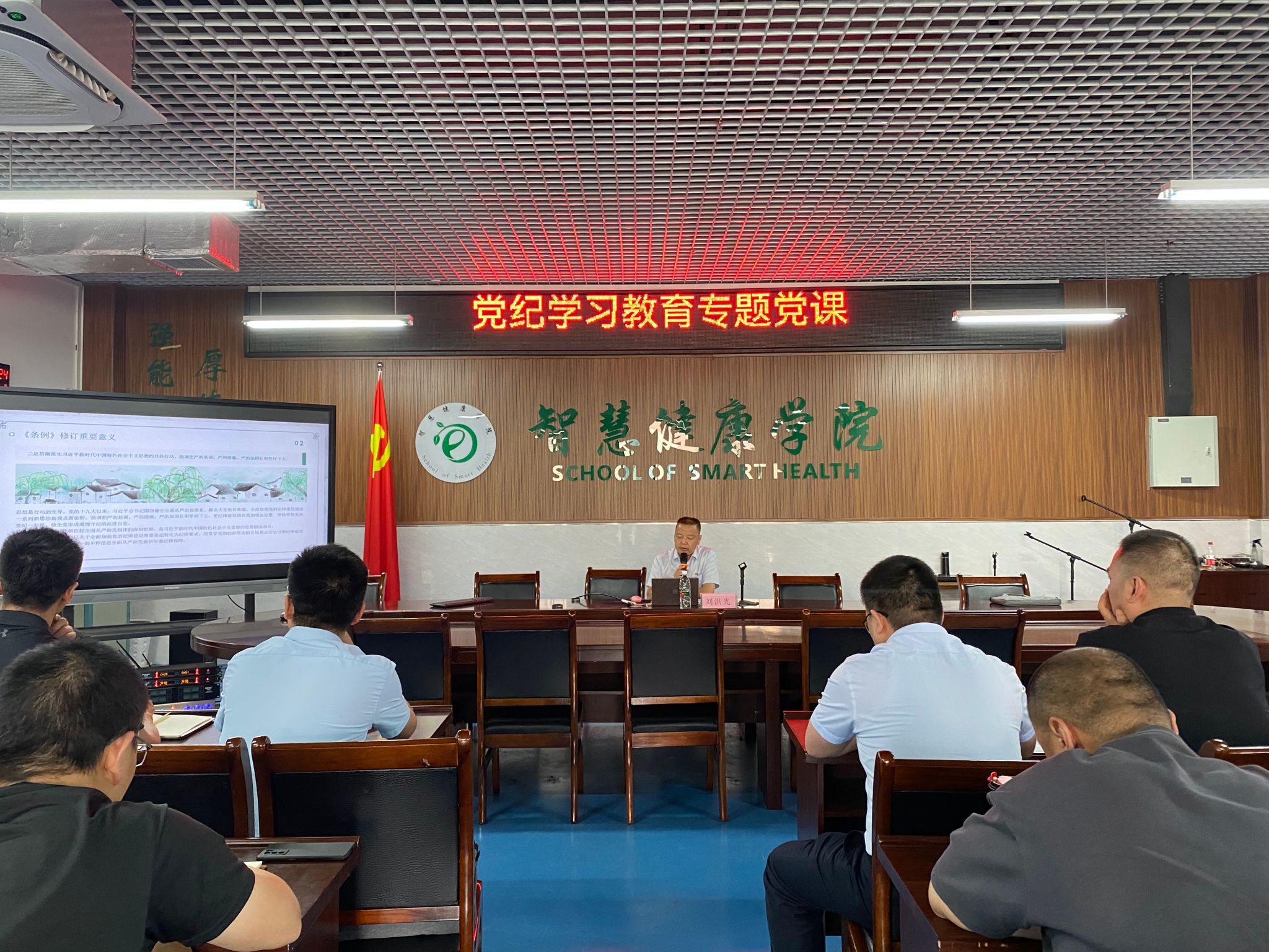 5月30日下午2点30分,刘洪光副校长为后勤保障处党支部、智慧健康学院党总支、党委宣传部党支部讲党纪学习教育专题党课——《中国共产党纪律处分条例》解读,共71名党员参加了本次党纪学习教育专题党课。