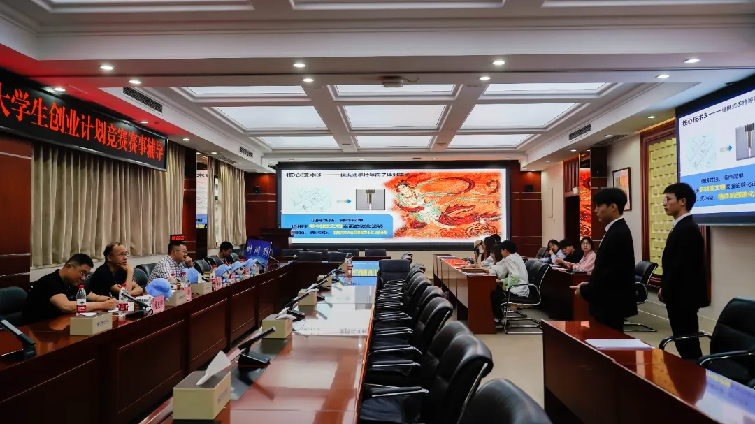 辅导会现场,入围市赛决赛项目的各参赛学生代表模拟路演答辩,对项目进行全方位的展示介绍。专家指导老师就各项目目前存在的问题提出了相应的改进建议,并进行点对点辅导。同时对项目选题方向和定位、参赛技巧与准备等方面进行了系统、详实的指导,对参赛注意事项、项目评审要点进行解析,有利于对标先进,查漏补缺,为下一步的项目改进提供了有力的方向。在现场,同学们纷纷就在参赛中遇到的难点、热点问题提出疑惑,老师们耐心答疑解惑,为同学们提供了宝贵的建议和指导。