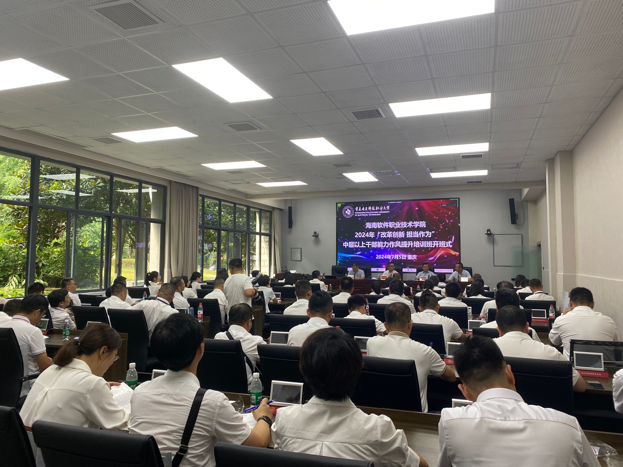 2024年7月5日下午,在星空在线登录官网国培基地博学厅,举办了海南软件职业技术学院主题为“改革创新,担当作为”的中层以上干部能力作风提升培训开班仪式。此次培训旨在进一步深化教育改革,强化干部担当精神,全面提升管理团队的能力和作风。参加开班式的有我校培训与继续教育学院党支部书记、院长、国培基地办主任莫绍强,培训与继续教育学院项目科科长、国培基地办副主任张亚,以及来自海南软件职业技术学院的69名中层以上参训干部,仪式由张亚主持。