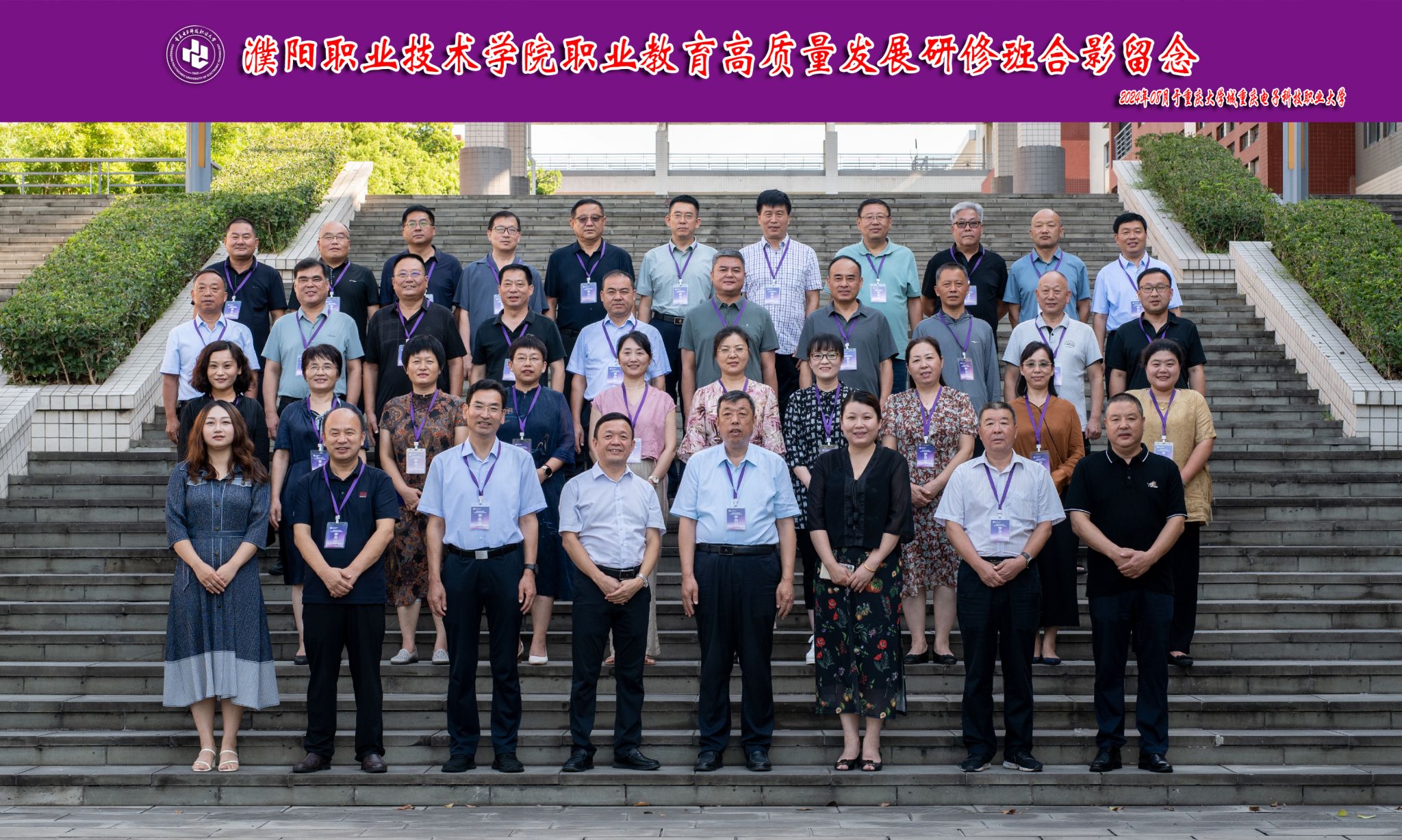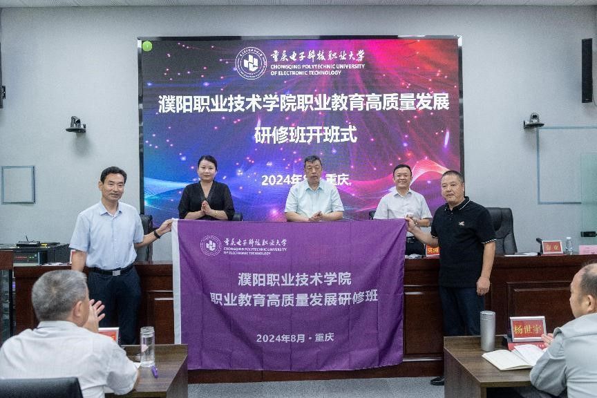 8月7日,濮阳职业技术学院职业教育高质量发展研修班开班式在我校国培基地博学厅举行。濮阳职业技术学院党委书记邓德华教授,教育部全国职业学校校长培训重庆基地办主任、星空在线登录官网职教师资培训学院书记兼院长莫绍强教授,星空在线登录官网数字媒体学院院长谢永教授,教育部全国职业学校校长培训重庆基地办副主任张亚,以及来自濮阳职业技术学院的35名中层以上领导干部参加开班式。开班式由濮阳职业技术学院党委委员、副校长侯秀安主持。