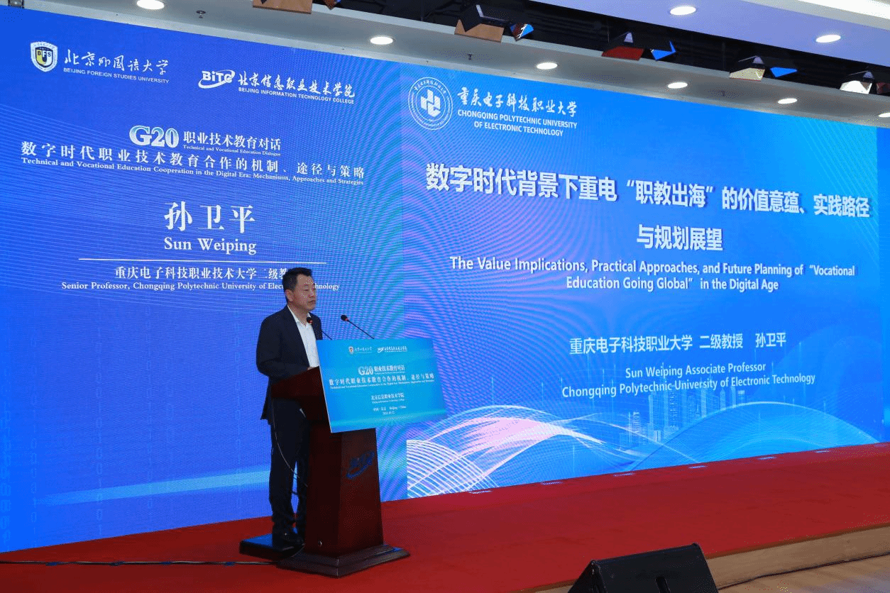 2024年10月12日,由北京外国语大学主办,北京信息职业技术学院承办的“G20职业技术教育对话会”在北京举行。对话围绕“数字时代技术与职业教育合作的机制、途径与策略”展开,吸引了全球范围内的专家学者及业界精英共同参与。星空在线登录官网(简称“重电”)二级教授孙卫平受邀出席,并在会上发表了题为“数字背景下重电“职教出海”的价值意蕴、实践路径和规划展望”主题报告。