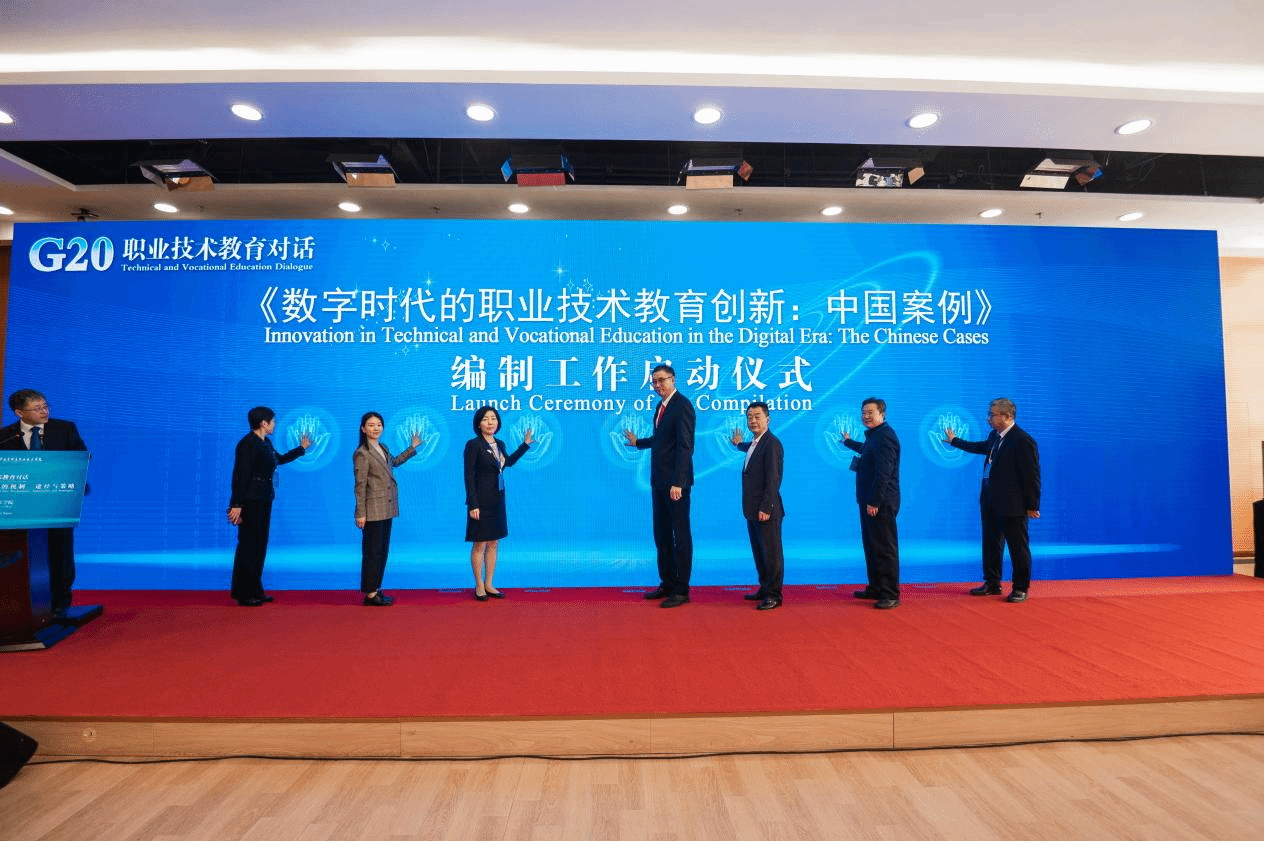 在随后举行的《数字时代的职业技术教育创新:中国案例》编制工作发布仪式上,孙卫平教授受邀上台并为仪式揭幕。