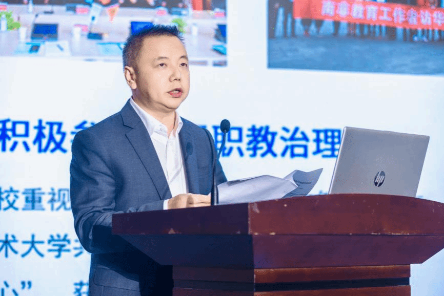 会上,副校长刘洪光以《变革·融合·创新 探索数字赋能的国际职业教育发展新模式》为题作主题发言。他介绍了我校的历史沿革、专业设置、办学特色以及近年来学校在国际化工作探索与实践方面取得的成果。