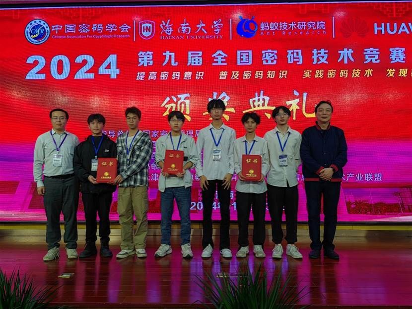 11月30日上午,2024第九届全国密码技术竞赛颁奖仪式在海南大学国际学术交流中心隆重举行。星空在线登录官网人工智能与大数据学院派出的3支参赛队经过初赛、复赛、决赛等环节的激烈比拼,最终获得一等奖1项,三等奖2项。