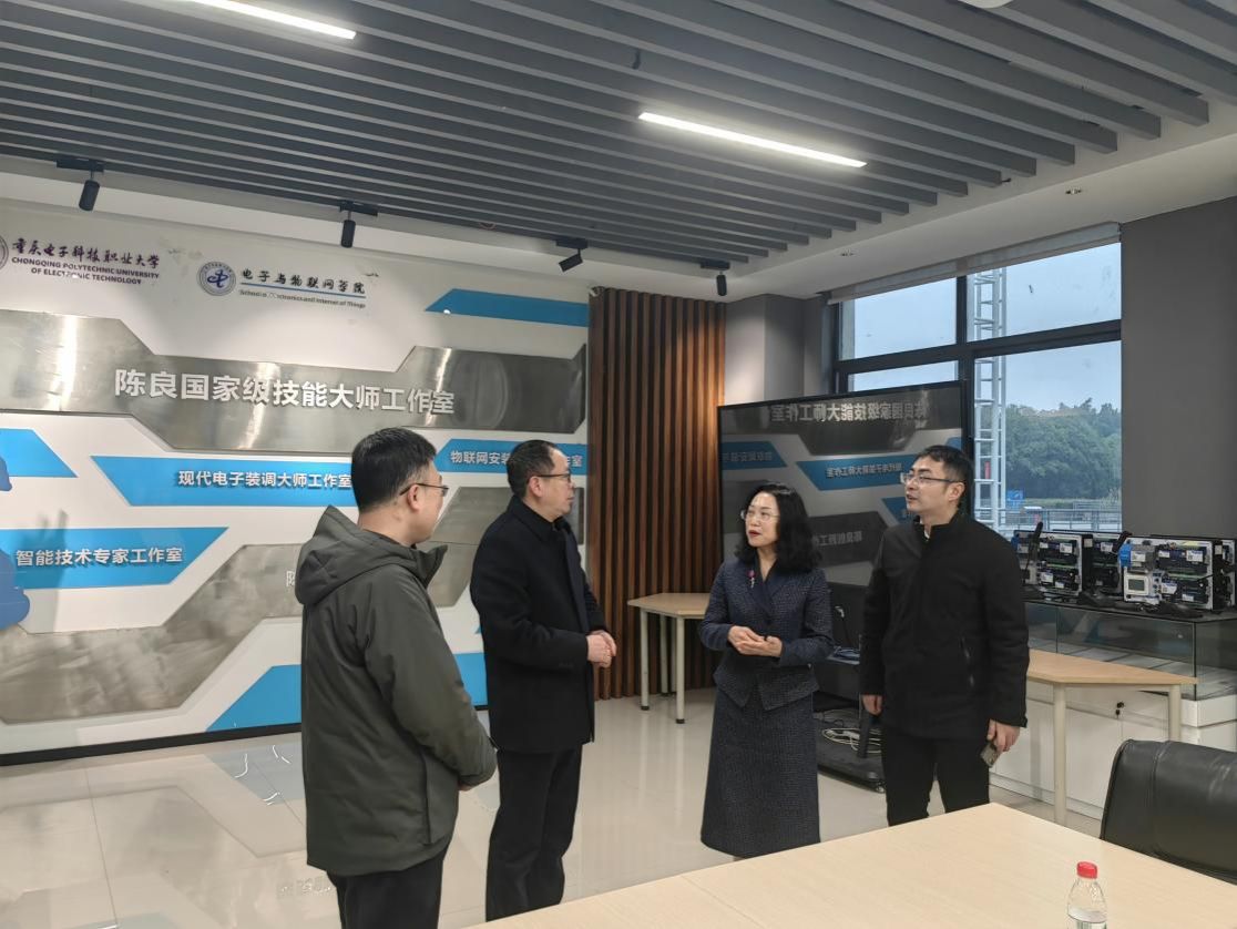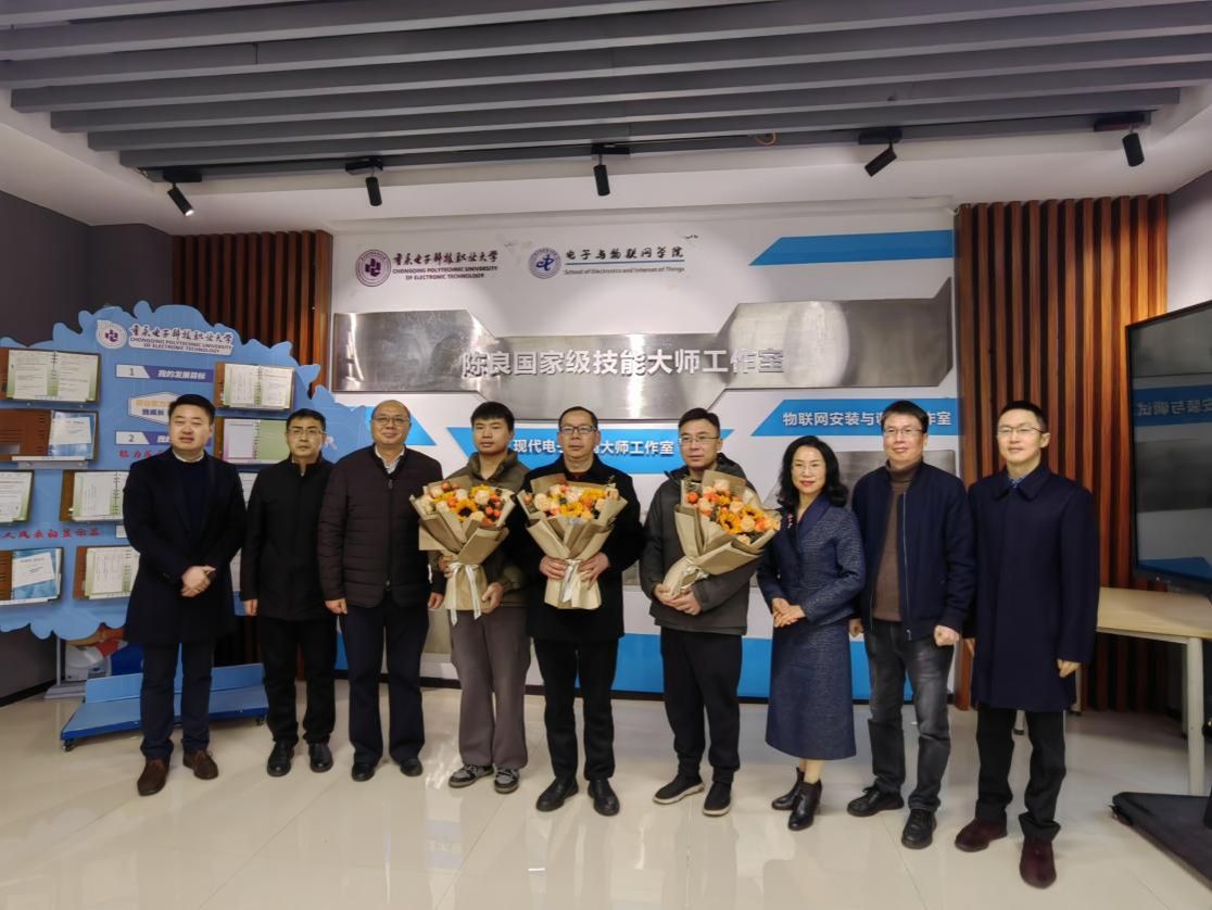 2025年1月17日上午,沙坪坝区区政协副主席郭文荫、区委组织部副部长周俊清、区人力社保局副局长朱杰一行莅临我校陈良国家级技能大师工作室,亲切慰问我校优秀高技能人才代表陈良教授、周渝曦教授以及李小松副教授,并代表区委区政府送上慰问礼品与鲜花。我校党委常委、副校长幸昆仑,党委教师工作部部长、人力资源处处长周鑫以及电子与物联网学院部分教师代表共同参与了此次慰问活动。