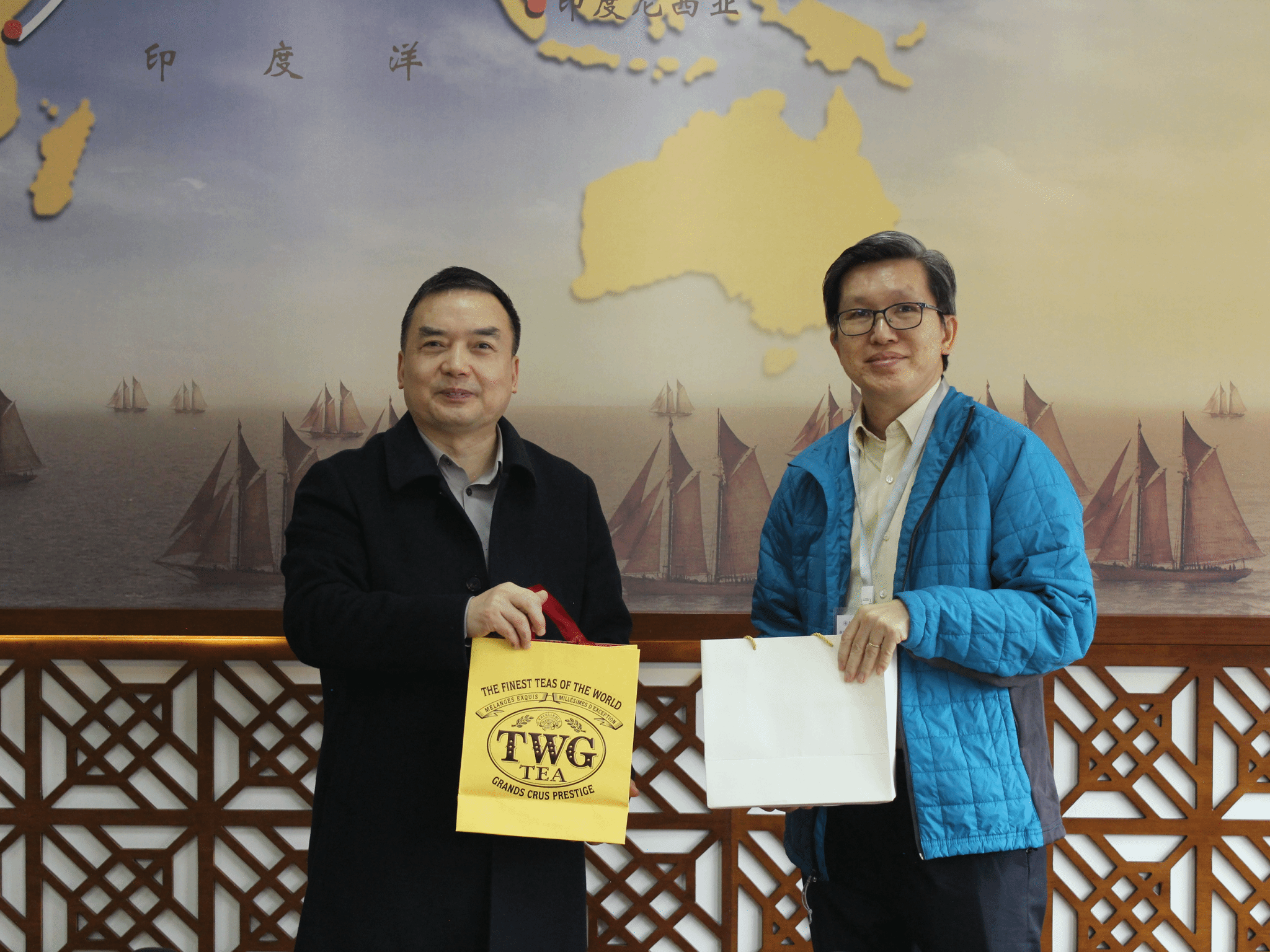 仪式上,幸昆仑副校长亲自为新加坡南洋理工学院的学生代表佩戴了校徽,标志着他们在中国的学习和生活之旅正式开启。随后,聂强校长代表我校与新加坡南洋理工学院的董明金、伍伟权老师互换了纪念礼物,象征着两校友谊长存。
