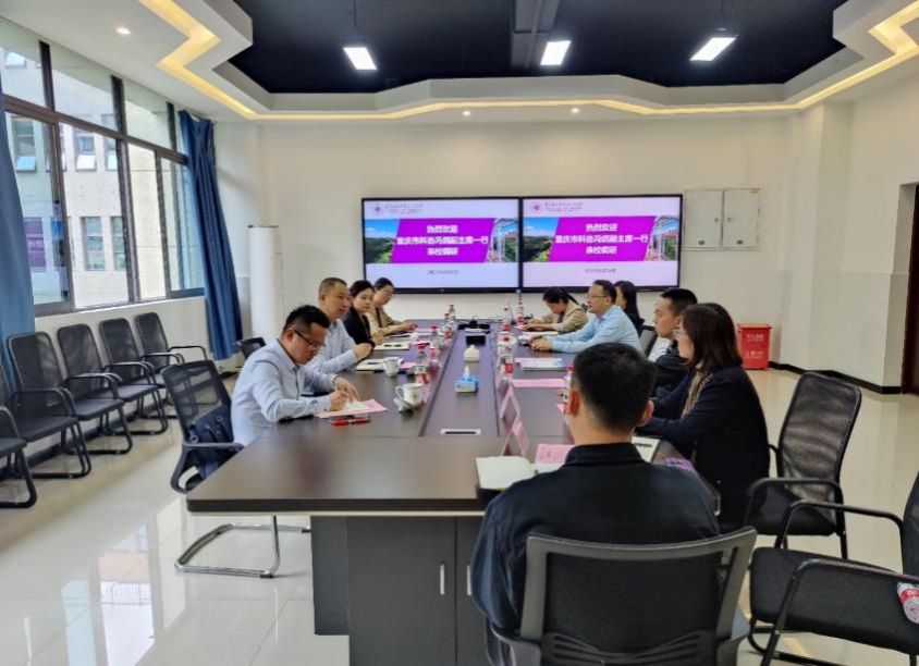 4月24日,重庆市科协党组成员、副主席冯纲,重庆市院士工作服务中心副主任秦定龙来校调研指导,冯纲副主席一行先后参观了校史陈列展览馆、国学馆、科技创新走廊,最后双方进行了座谈交流。学校副校长刘成俊,科研处处长沈雕、副处长黄睿,沙坪坝区科协主要负责人,重庆高技能人才发展研究中心、重庆沙坪坝区人工智能学会等相关人员陪同调研并参加座谈交流会。
