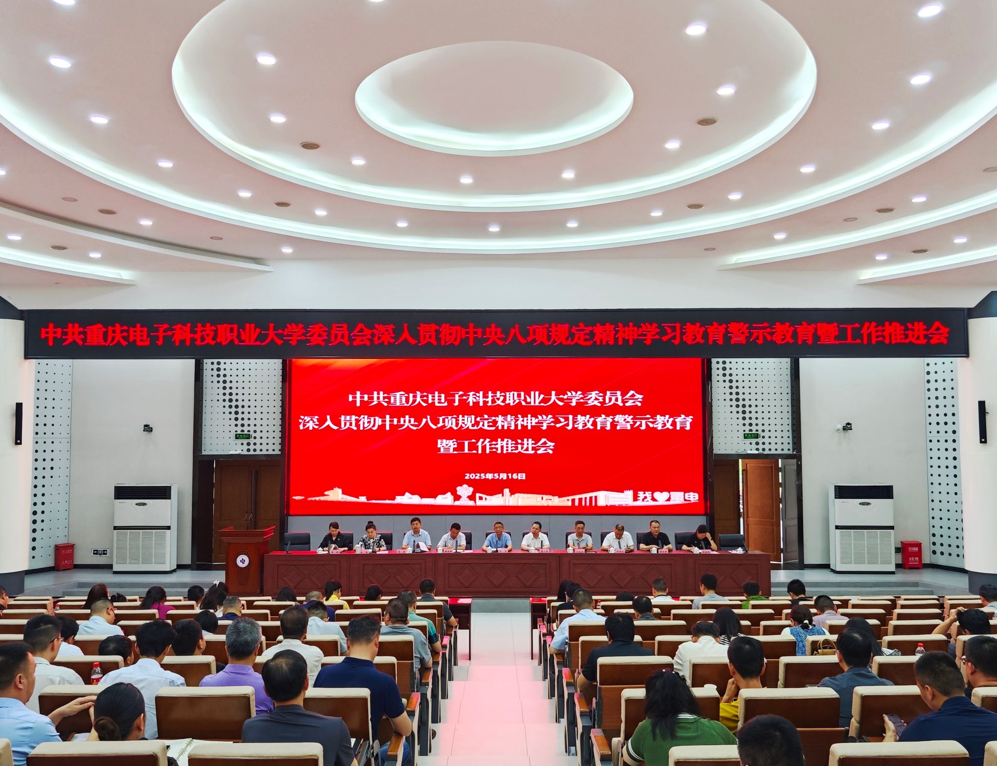 2025年5月16日上午9:00,学校在博远厅召开了深入贯彻中央八项规定精神学习教育警示教育暨工作推进会。本次会议由纪委书记、监察专员谢涛主持,全体在家校领导、党委常委,全体处科级领导干部,全体专职组织员(纪检监察员)、各二级学院党支部书记代表参加了会议。