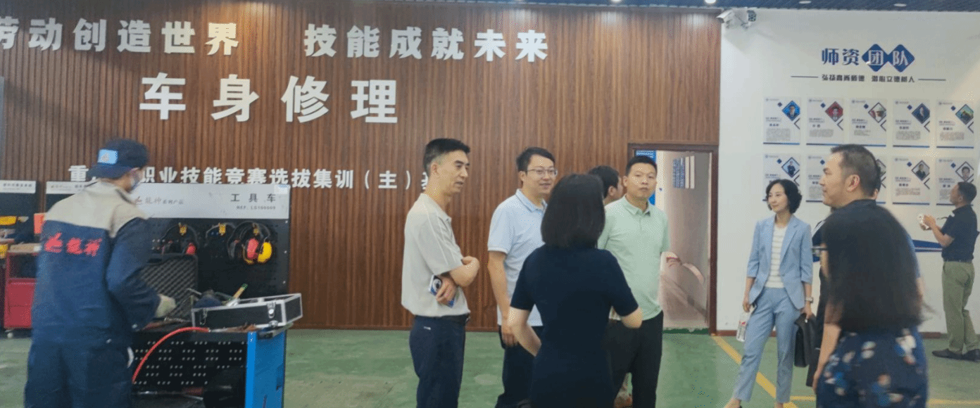 6月4日下午,重庆市人力资源和社会保障局职业技能鉴定指导中心王华源主任和宋琦副主任一行莅临我校视察了重庆市职业技能竞赛选拔集训基地集训情况。