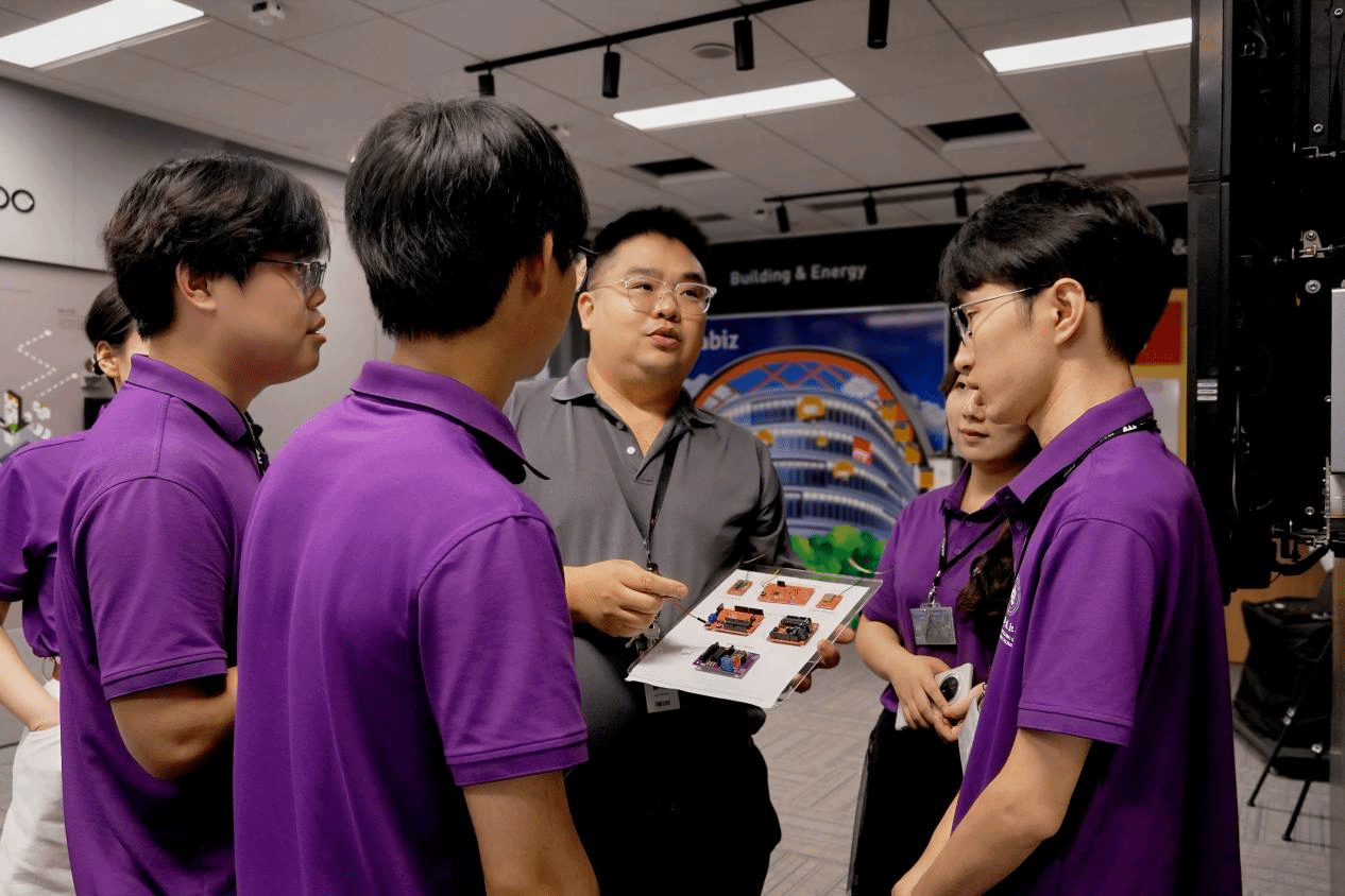 访学期间,重电学子深入感受了新加坡先进的职业教育模式。在ITE实训中心的参观学习中,AR/VR实训室内,学员们体验了虚拟仿真教学系统,这种沉浸式的学习方式让复杂的传感器、半导体原理变得直观可感。物联网实训中心里,电子资讯与通讯技术学院副院长Alex依托虚拟仿真教学平台Tinkercad,运用“AI+”项目式教学法,指导学员完成从信号采集到设备控制的闭环训练。特别值得一提的是,学员们还参观了新加坡环境保护与可持续发展展览馆,了解了新加坡在水资源循环利用、“垂直农场”等方面的创新实践。本次访学,通过“专业课程学习+社会实践调研+人文交流互鉴”的模式,使学员们更加深入且直观地了解了职业教育的前沿技术发展方向、相关产业生态的最新趋势以及创新科技的实际应用场景。