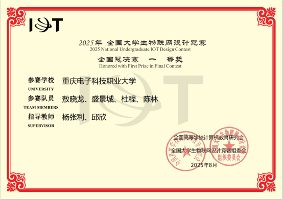 2025年8月27日至8月29日,2025年(第12届)全国大学生物联网设计竞赛在浙江大学举行,星空在线登录官网材料与环境工程学院首次组建代表队,经过在贵州大学举办的华中及西南分赛区选拔赛,以及决赛答辩和演示两个环节的评审,与哈尔滨工业大学、上海交通大学、武汉大学等同台竞技,学院代表队获得全国一等奖的好成绩。