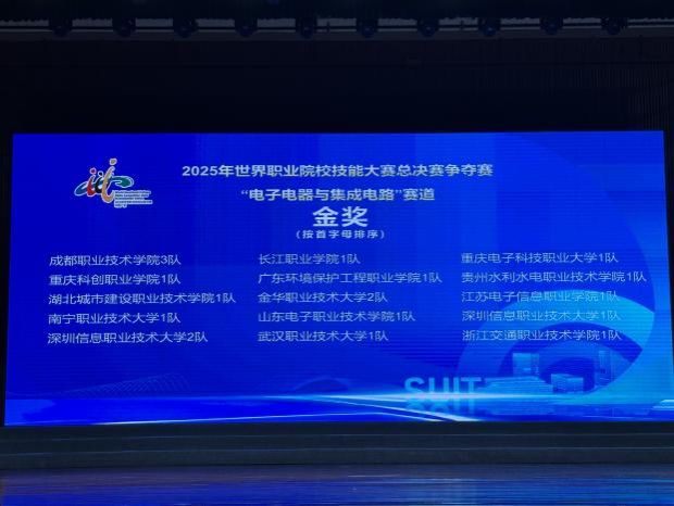 2025年8月27日至31日,由教育部等九部门联合主办的2025年世界职业院校技能大赛总决赛争夺赛(高职组)"电子电器与集成电路"赛道在深圳信息职业技术大学成功举办。本届赛事吸引全国31个省(区、市)的153支高职代表队同台竞技,我校物联网应用技术团队凭借创新项目"边坡智能感知预警系统",从激烈角逐中脱颖而出,最终斩获金奖。