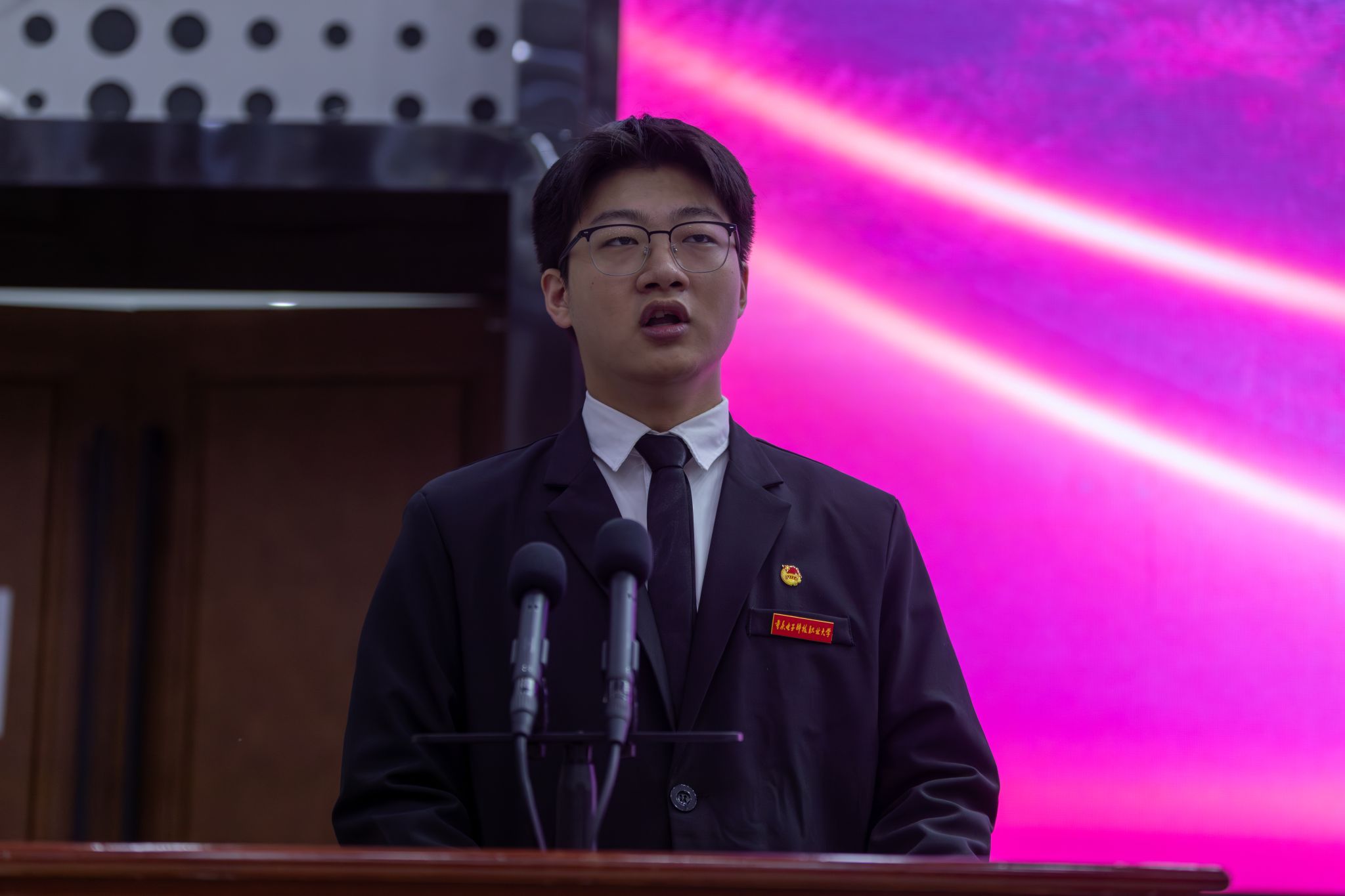 来自智能制造与汽车学院的学生代表卞一鸣在发言中深情分享了在“重电遇见良师”的成长故事,细数“备战技能大赛的日子”,表达了对老师们悉心栽培的感恩之情。