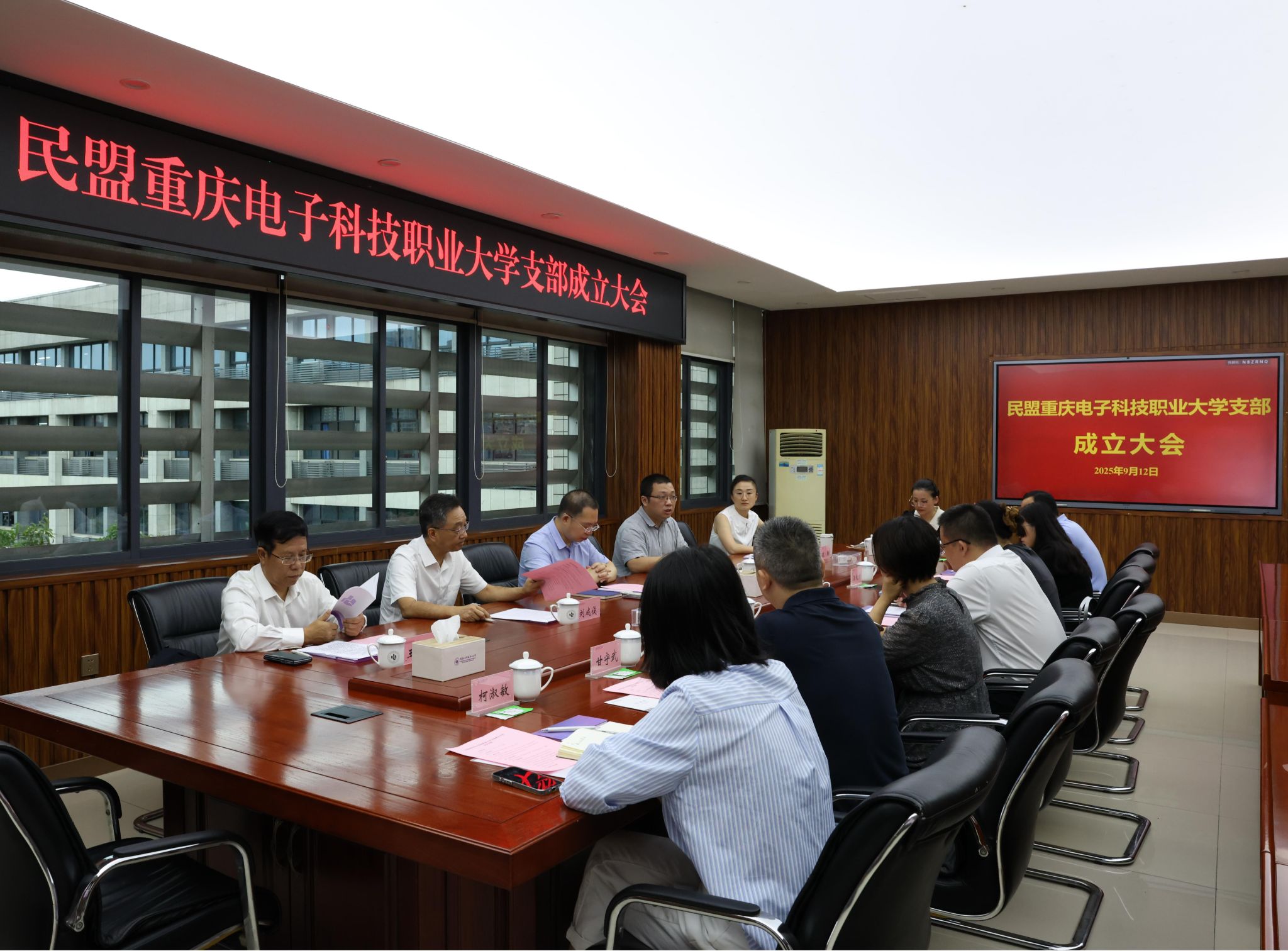 2025年9月12日上午10:00,民盟星空在线登录官网支部成立大会在学校博德楼五楼会议室顺利召开。民盟九龙坡区委会专职副主委马力,学校党委副书记龚小勇、副校长刘成俊,党委常委、党委统战部部长疏勤,九三学社重电支社主委王正勇,以及民盟星空在线登录官网支部全体盟员、拟发展盟员共同参会。大会由学校党委常委、党委统战部部长疏勤主持。