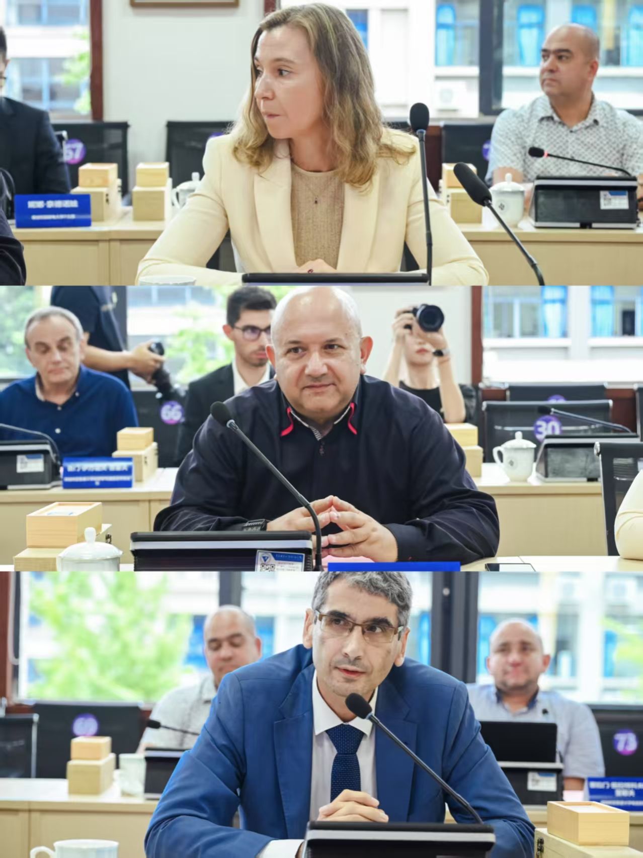 在嘉宾发言环节,保加利亚邮电大学校长Dr.Miglena Temelkova、保加利亚鲁塞大学科学与研究副校长Dr.Daniel Mihaylov Bratanov、教育副校长Dr.Teodor Bozhidarov Iliev等围绕欧洲职业教育体系建设、校企协同育人路径等作交流分享,对我校专业建设与产学研合作成效给予高度认可,各方在两国教育背景下可以为社会发展创造更多价值,在推动教学理论与实践相结合等方面达成多项共识,共同迈向合作新台阶。