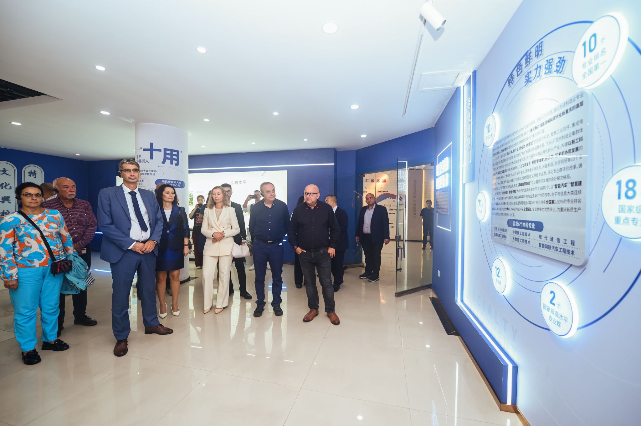 活动期间,保加利亚代表团先后考察校史馆、人工智能与大数据学院实训基地、重电-华为智慧创新中心等场所,详细了解学校“数智重电” 品牌建设、产教融合成果及实训教学模式,对学校与龙头企业协同创新的实践经验表示赞赏。在传统文化体验环节,嘉宾通过书法活动增进文化认同,为合作注入人文内涵。