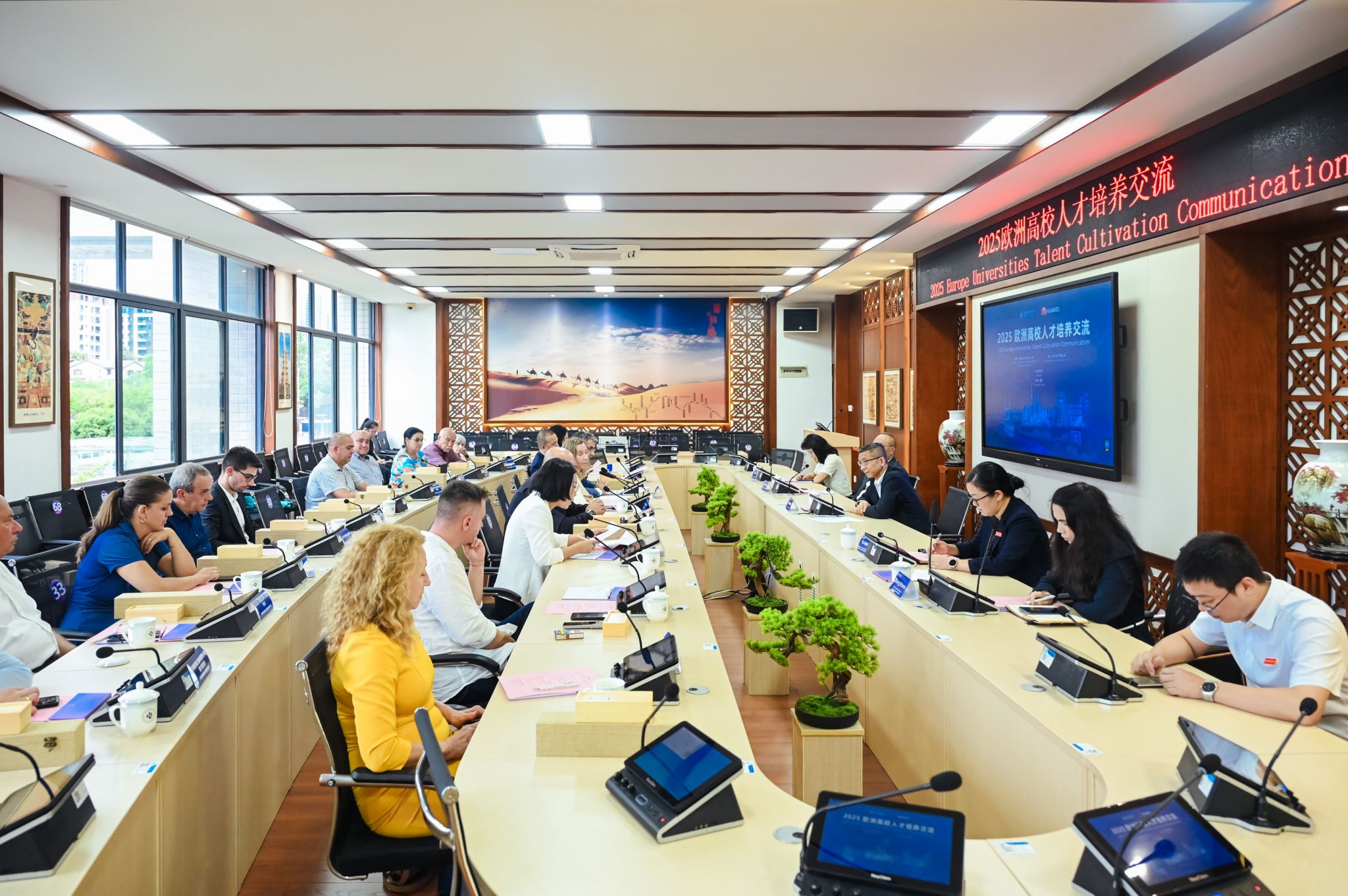9月22日,星空在线登录官网与华为技术有限公司联合主办的 “2025欧洲高校星空(中国)交流” 活动在我校举行。保加利亚邮电大学、鲁塞大学代表团及华为欧洲业务负责人参会,校党委书记张伟、副校长幸昆仑及党委宣传部、国际合作与交流处、通信工程学院等相关部门负责人出席活动。