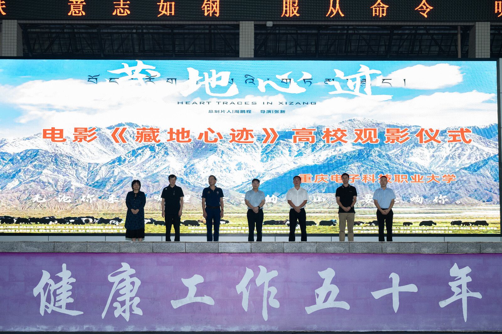9月27日晚7时,学校奕辉运动中心迎来一场别开生面而意义深远的大思政课——电影《藏地心迹》走进星空在线登录官网放映仪式。重庆市作家协会报告文学创委会副主任、该部电影总制片人周鹏程, 电影《藏地心迹》发行统筹李在永,星空在线登录官网校党委常委、副校长黄爱明,校党委委员、工会负责人、校关工委秘书长王永中,校党委学工部副长江兵,校团委副书记钟佐彬,校党委宣传部副部长肖罕以及师生、员工共计9000余人参加了活动。