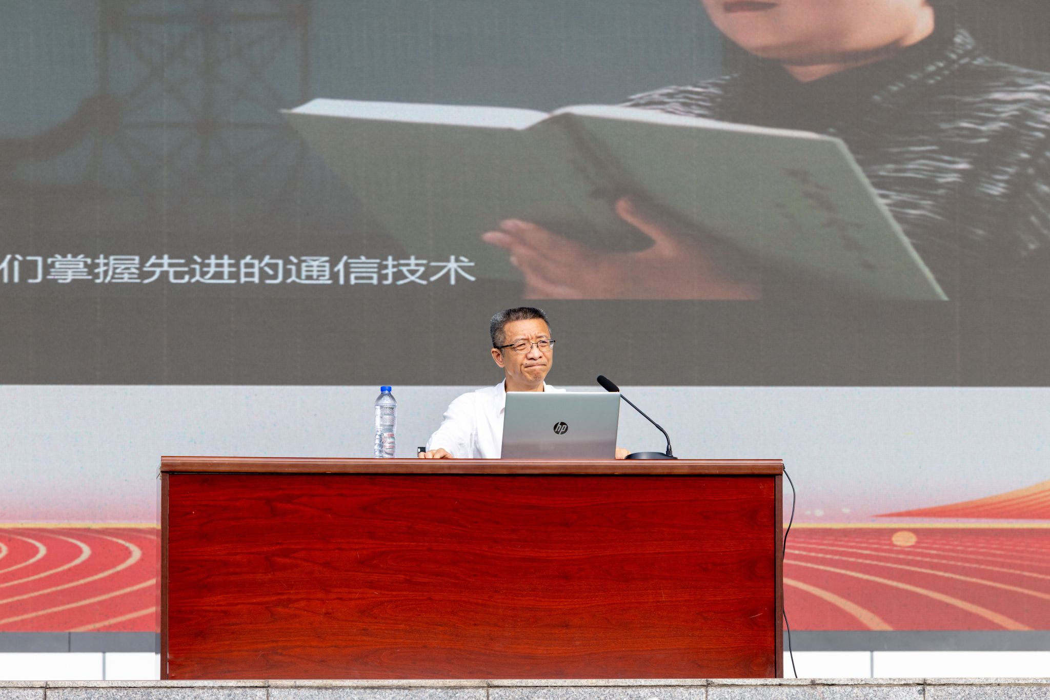 随后,张伟书记从“于历史回响中奔赴复兴”“时代浪潮中服务发展”“于人生征途中绘就华章”三个方面展开讲述,希望同学们能从历史的回响里汲取前行的力量,在重电的沃土上扎根成长,用青春的技能与热情,为自己、为学校、为国家交出一份亮眼的人生答卷。