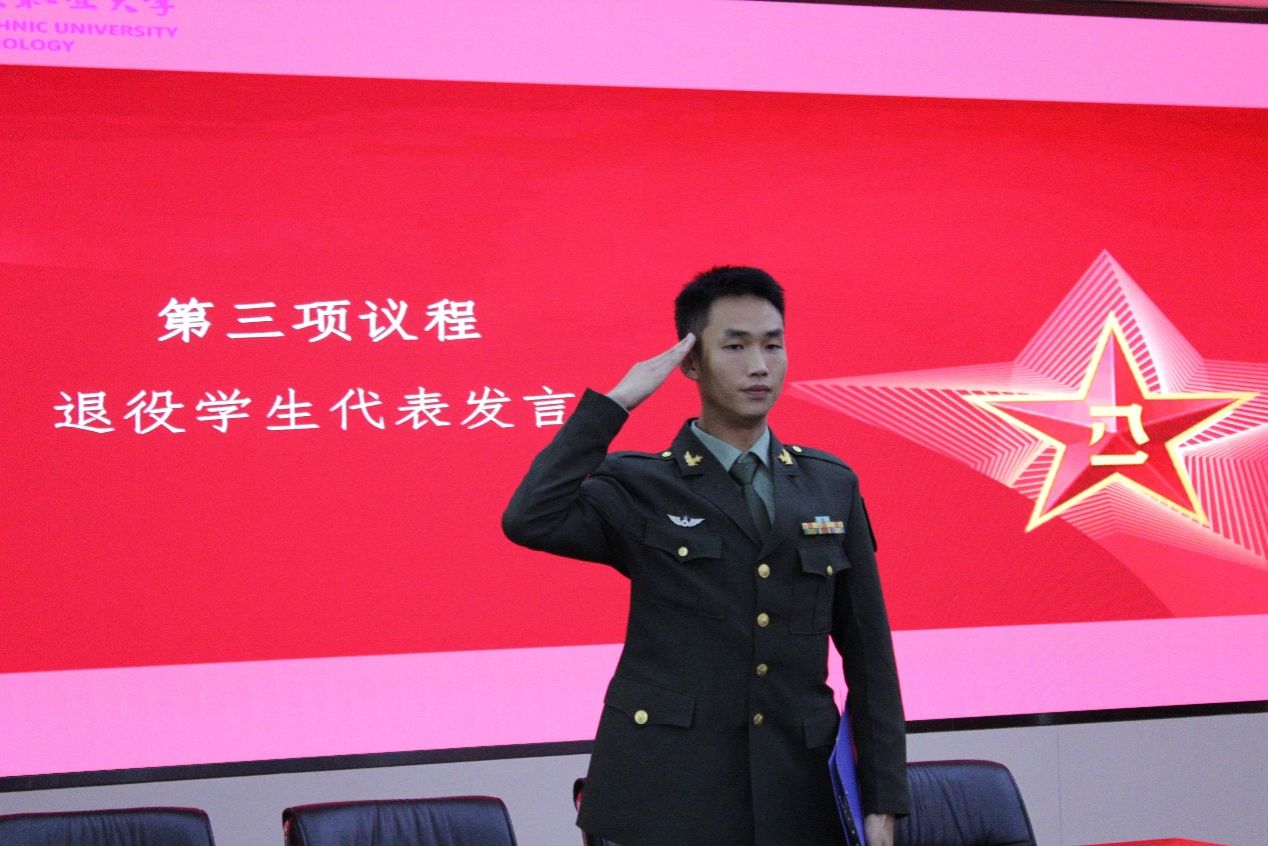 人民武装部部长田艾向与会退役复学学子介绍了学校突出的征兵和国防教育成效,希望大家踊跃加入重电退役军人之家——迷彩青年工作站,把军人优秀品质、奉献精神、优良作风带到新的学习和工作岗位上,在重电大思政育人环境中发挥积极作用,为重电的征兵和国防事业贡献自己的力量。也感谢各二级学院和职能部门对学校人民武装工作的鼎力支持和帮助。党委学工部部长江兵希望退役复学大学生好好学习,身体力行,用军人优良作风沁润身边每一位重电学子。