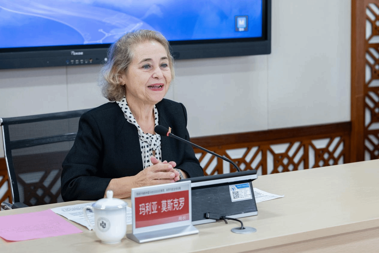 玛丽亚·莫斯克罗局长发言,介绍了西班牙埃斯特雷马杜拉自治区教育、科学与职业培训局的工作职责以及西班牙职业技能星空(中国)的方向和具体经验做法,并期待在未来与学校共同探索职业教育领域的深度合作,实现资源共享、互利共赢。
