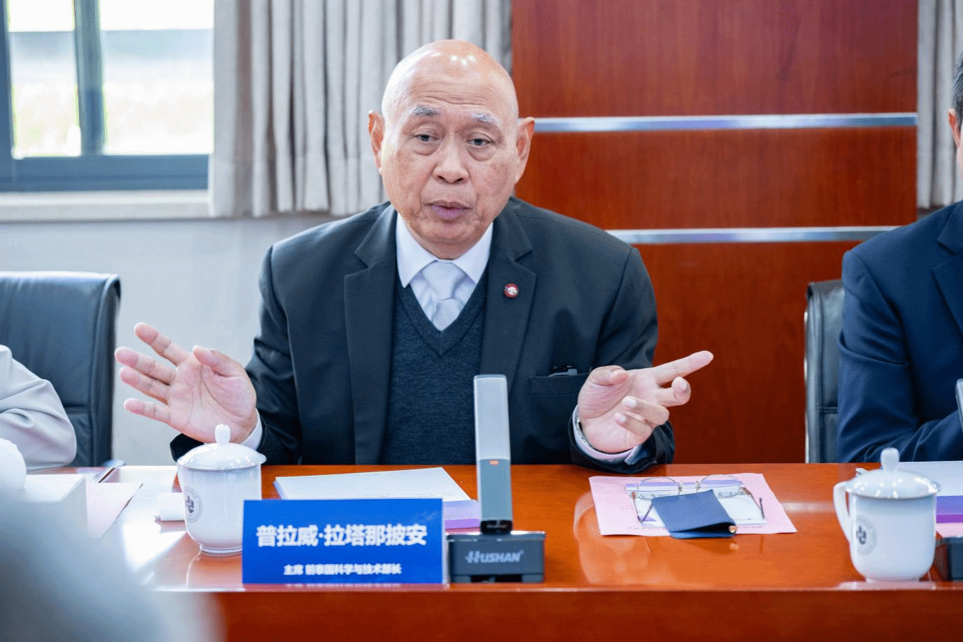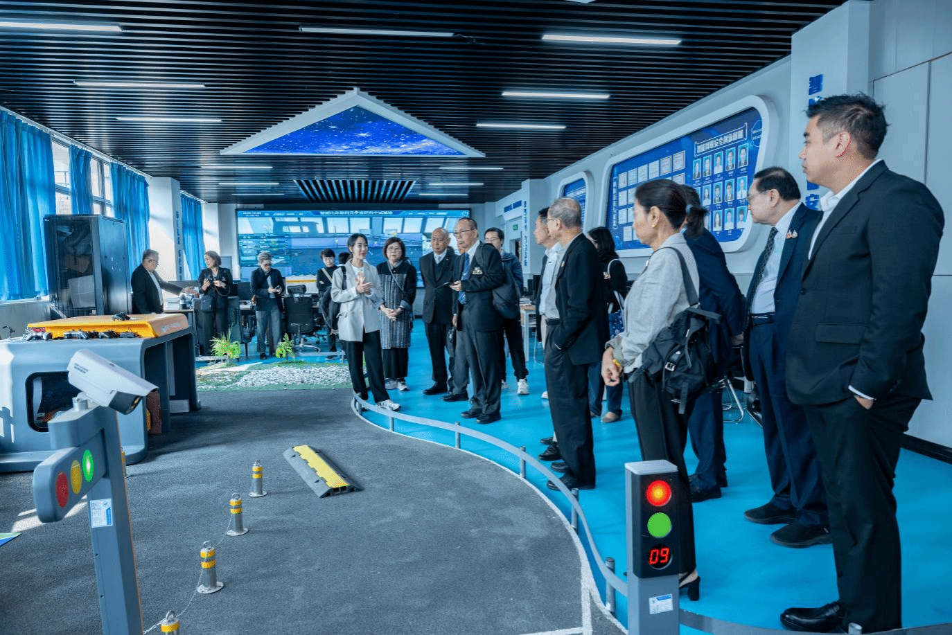 2025年10月28日上午泰国工商大学校务委员会主席、泰国科学与技术部前部长普拉威・拉塔那披安主席率泰国国会前参议员威楚达·拉塔那披安理事、泰国工业部前常务秘书维通·诗玛乔迪理事、泰国文化部前常务秘书普丽莎娜·蓬塔诗里功理事等来访我校参观交流,学校党委书记张伟、党委常委、副校长幸昆仑以及党委宣传部、国际合作与交流处、人工智能与大数据学院、智能制造与汽车学院负责人参与交流座谈。