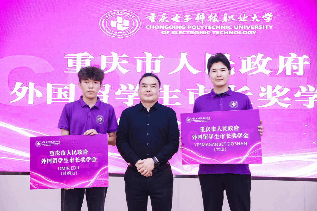 典礼现场还举行了颁奖与校徽佩戴仪式。聂强校长为荣获2025-2026学年重庆市人民政府外国留学生市长奖学金的同学颁发荣誉证书,鼓励获奖学生珍惜荣誉、再接再厉,在学业上追求更高突破。随后,幸昆仑副校长为来华留学新生代表郑重佩戴校徽,小小的校徽不仅标志着新生们正式成为重电大家庭的一员,更承载着学校对他们未来发展的深切期盼。